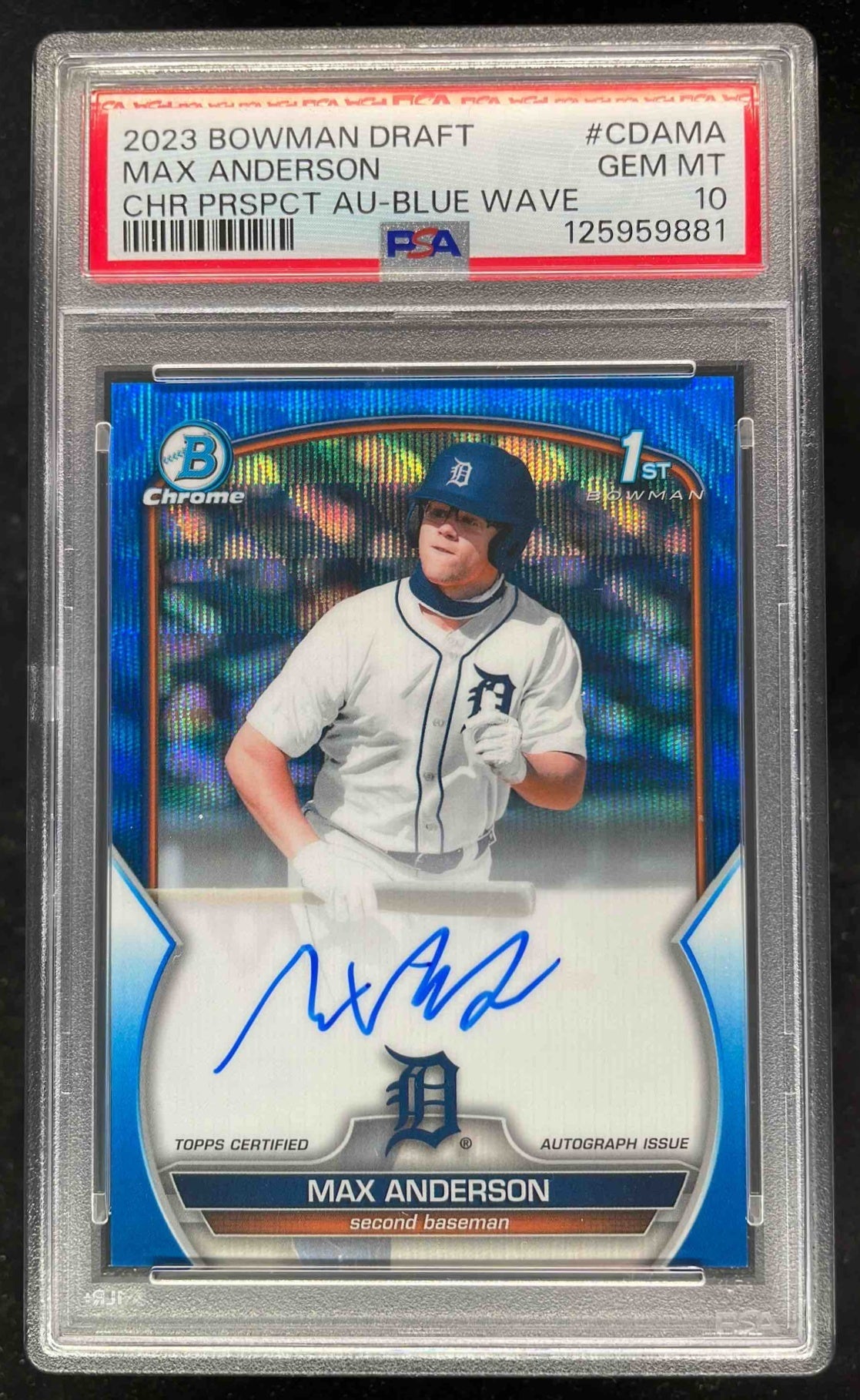 2023 Bowman Draft Chrome Blue Wave Refractor Max Anderson RC Auto /150 PSA 10
