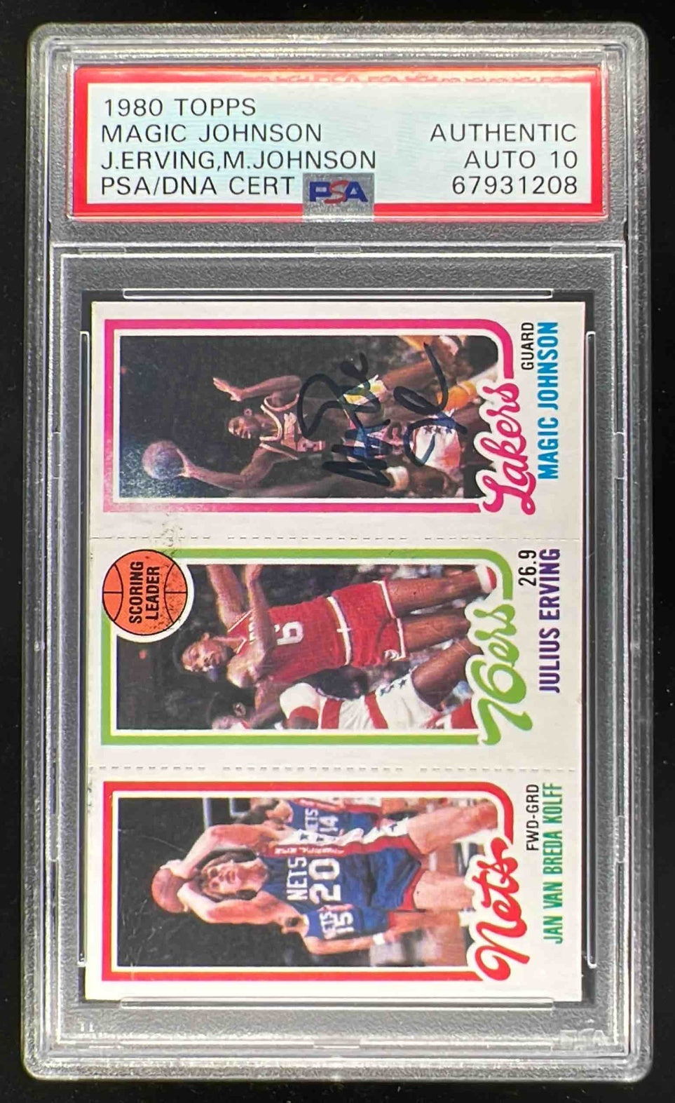 1980 Topps Jan Van Brda Kolff Julius Erving Magic Johnson Auto PSA Authentic