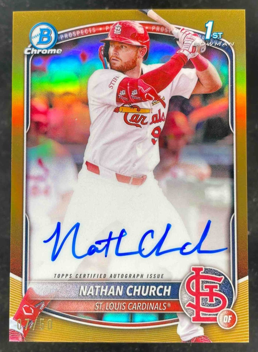 2025 Bowman Chrome Autograph Gold Refractor #CPA-NCH Nathan Church RC Auto /50