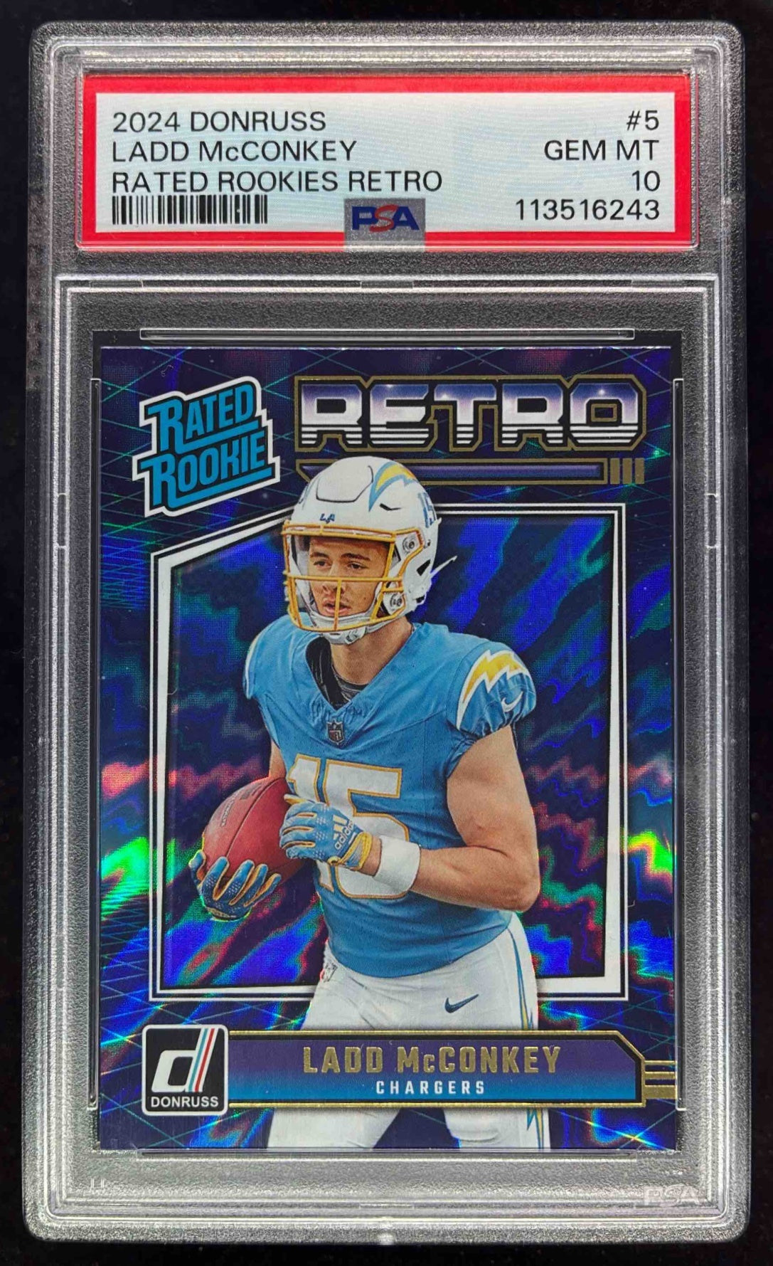 2024 Panini Donruss Retro Rated Rookie #5 Ladd McConkey Rated Rookie PSA 10