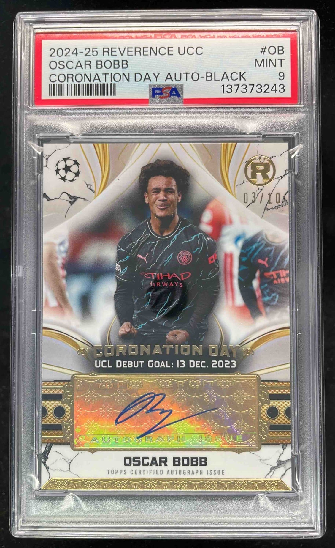 2024-25 Topps Reverence Coronation Day Black #CDA-OB Oscar Bobb Auto /10 PSA 9