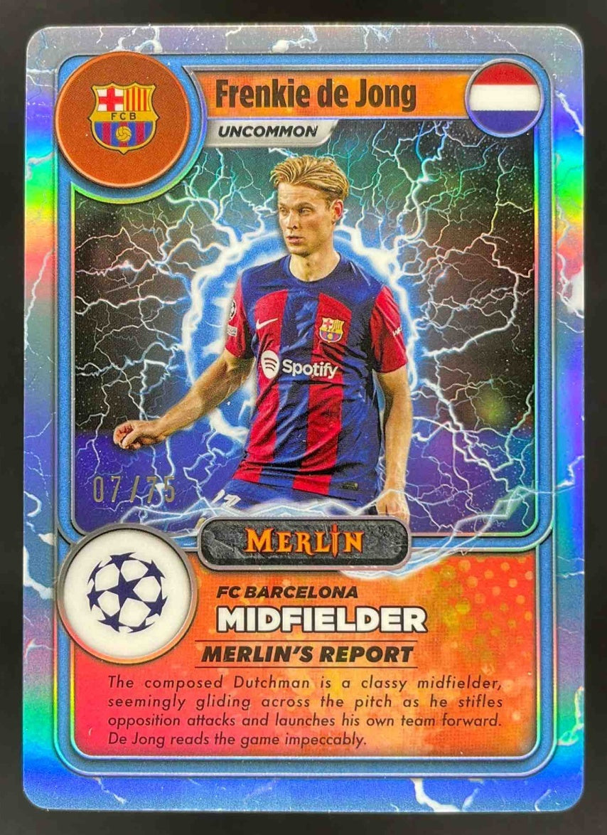 2024-25 Topps Merlin Chrome Merlin's Gamers Blue Lightning Frenkie De Jong /75
