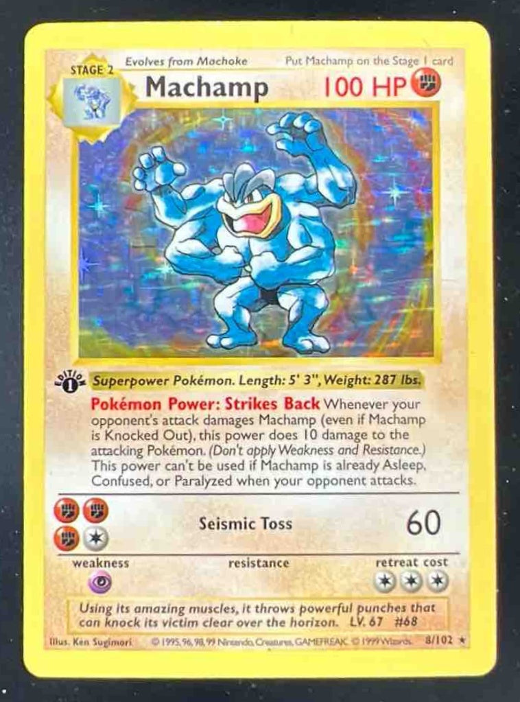 1999 Pokemon Shadowless #8/102 Machamp Holo