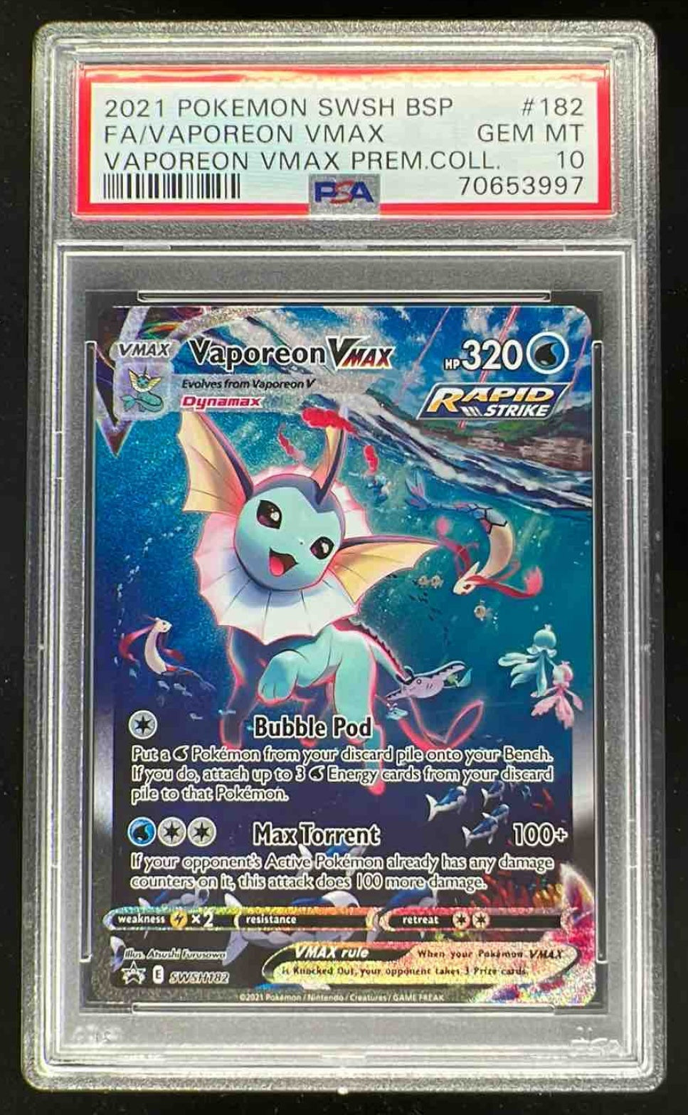 2021 Pokemon Sword & Shield #182 Vaporeon Full Art VMax PSA 10