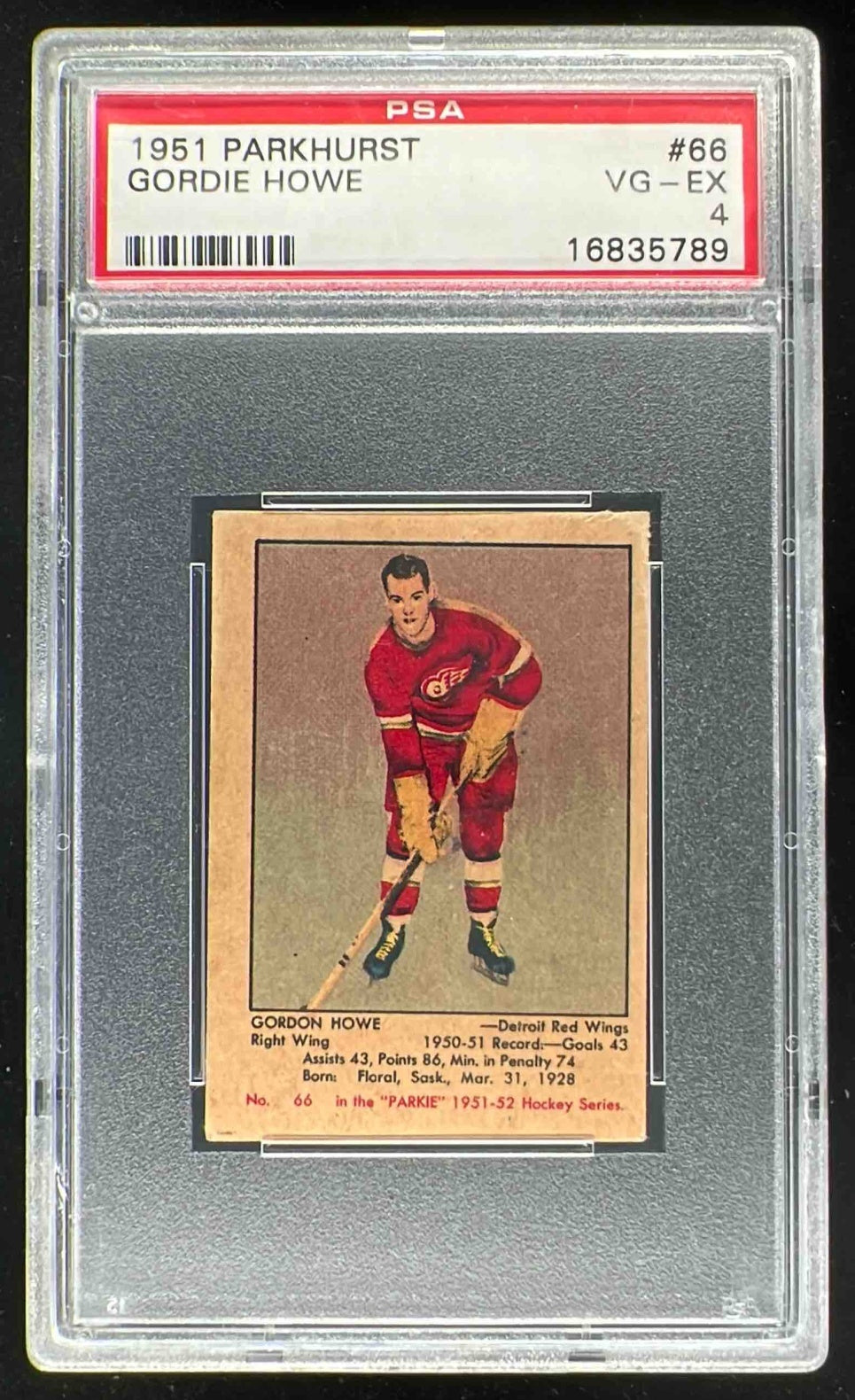 1951-52 Parkhurst #66 Gordon Howe RC PSA 4