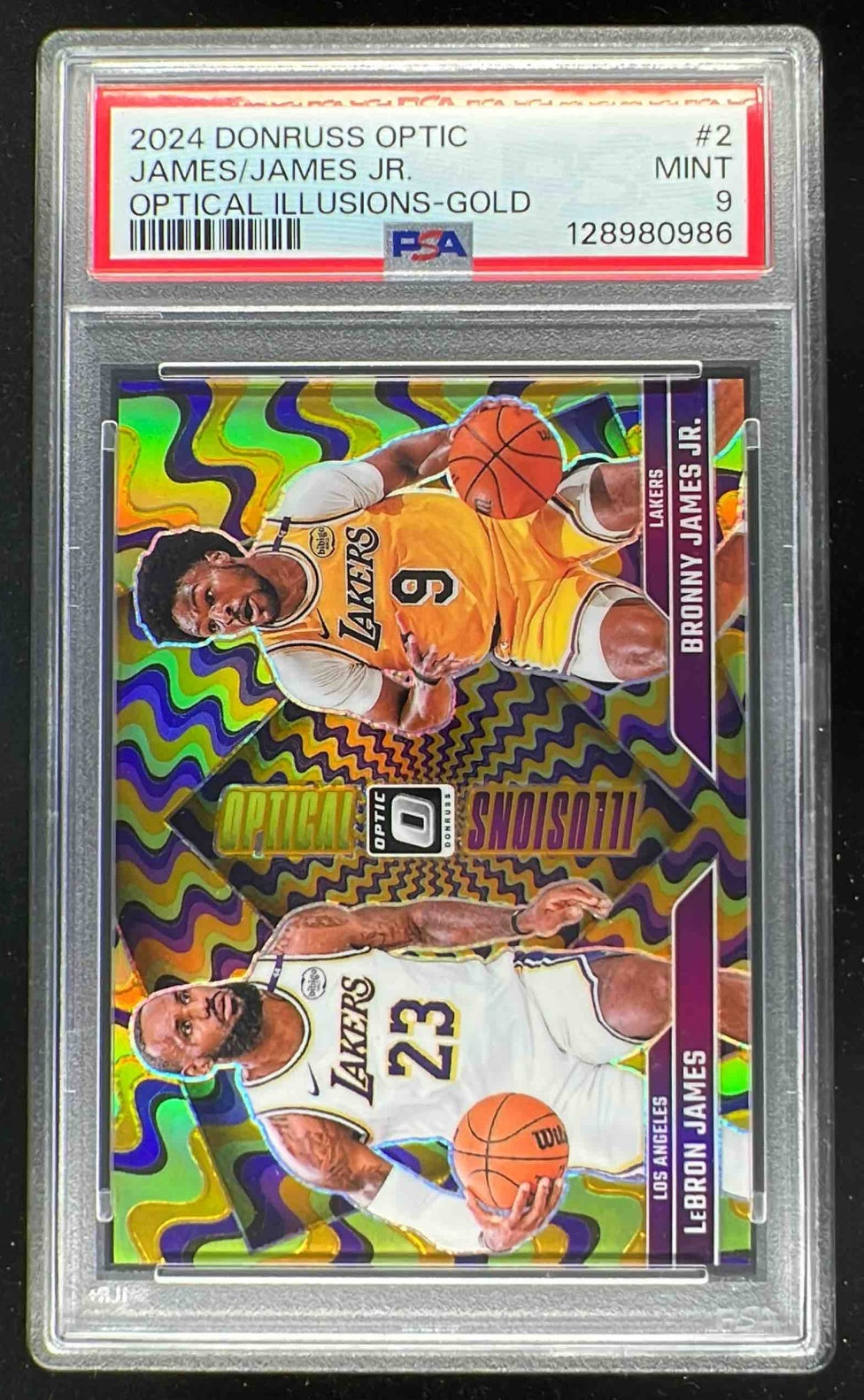 2024 Donruss Optic Optical Illusion Gold Bronny James Jr. LeBron James /10 PSA 9