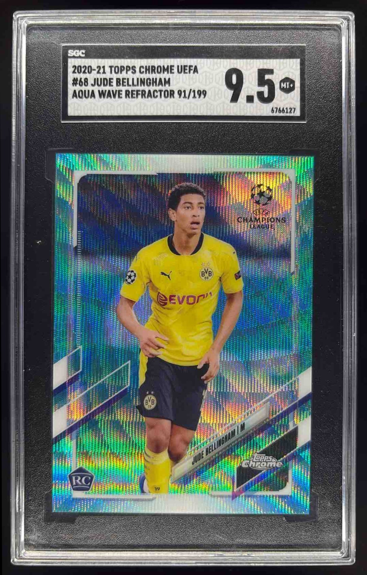 2020-21 Topps Chrome UEFA Aqua Wave #68 Jude Bellingham RC /199 SGC 9.5