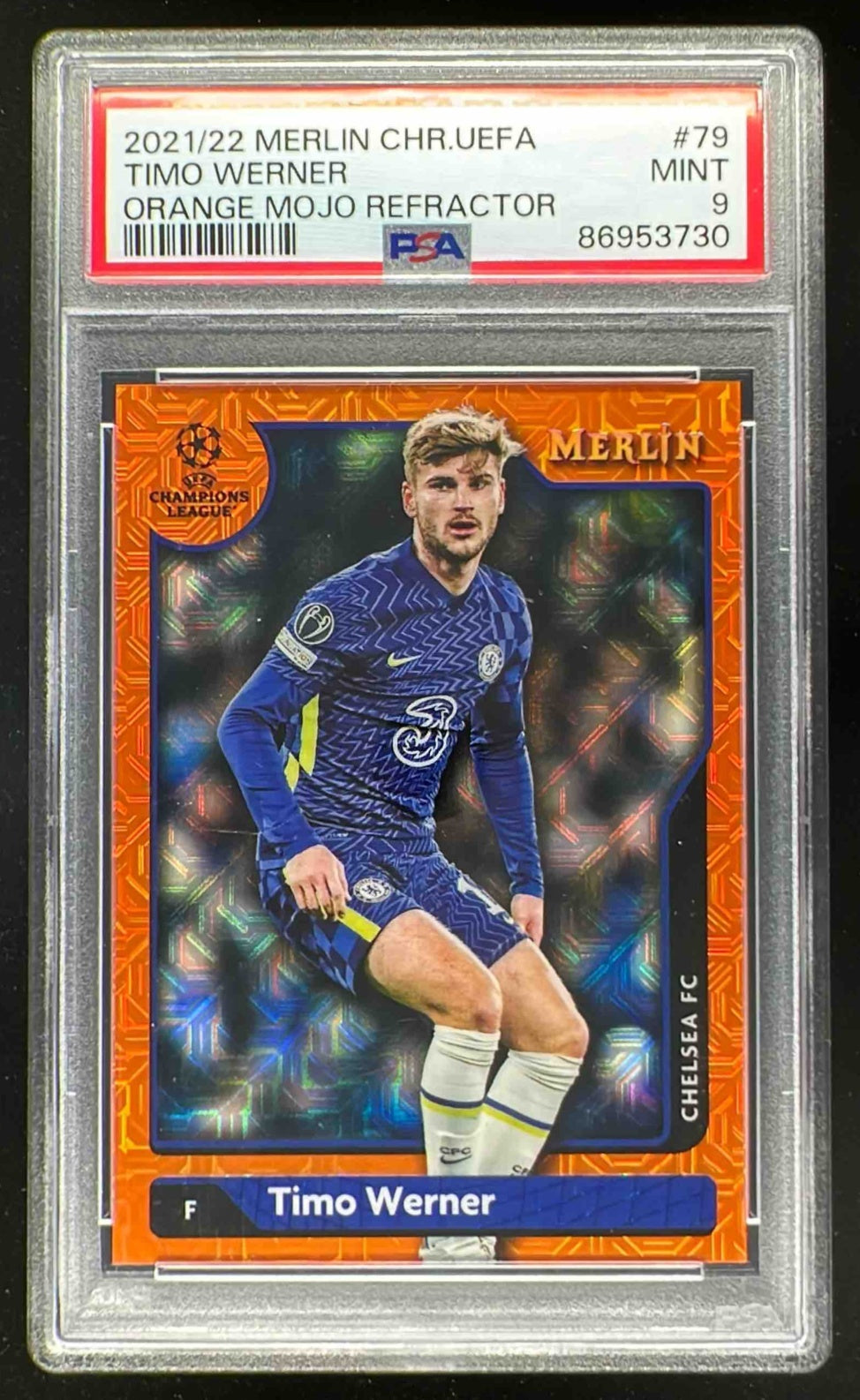 2021-22 Topps Merlin Chrome Orange Mojo Refractor #79 Timo Werner /25 PSA 9