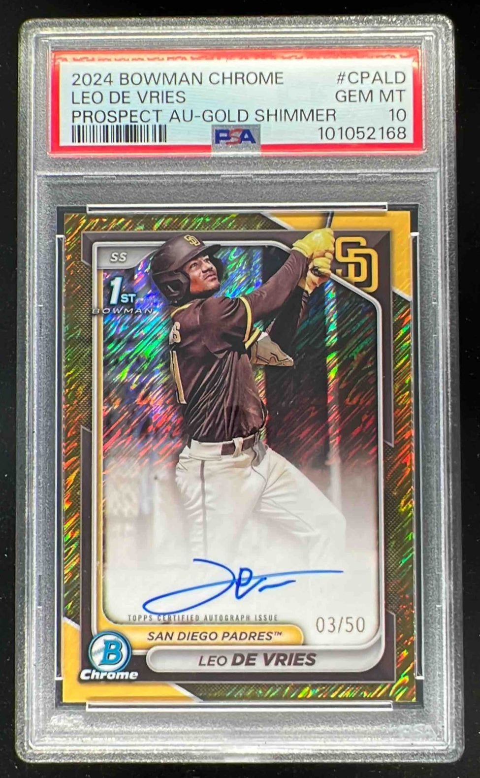2024 Bowman Chrome Gold Shimmer #CPA-LD Leo De Vries RC Auto /50 PSA 10