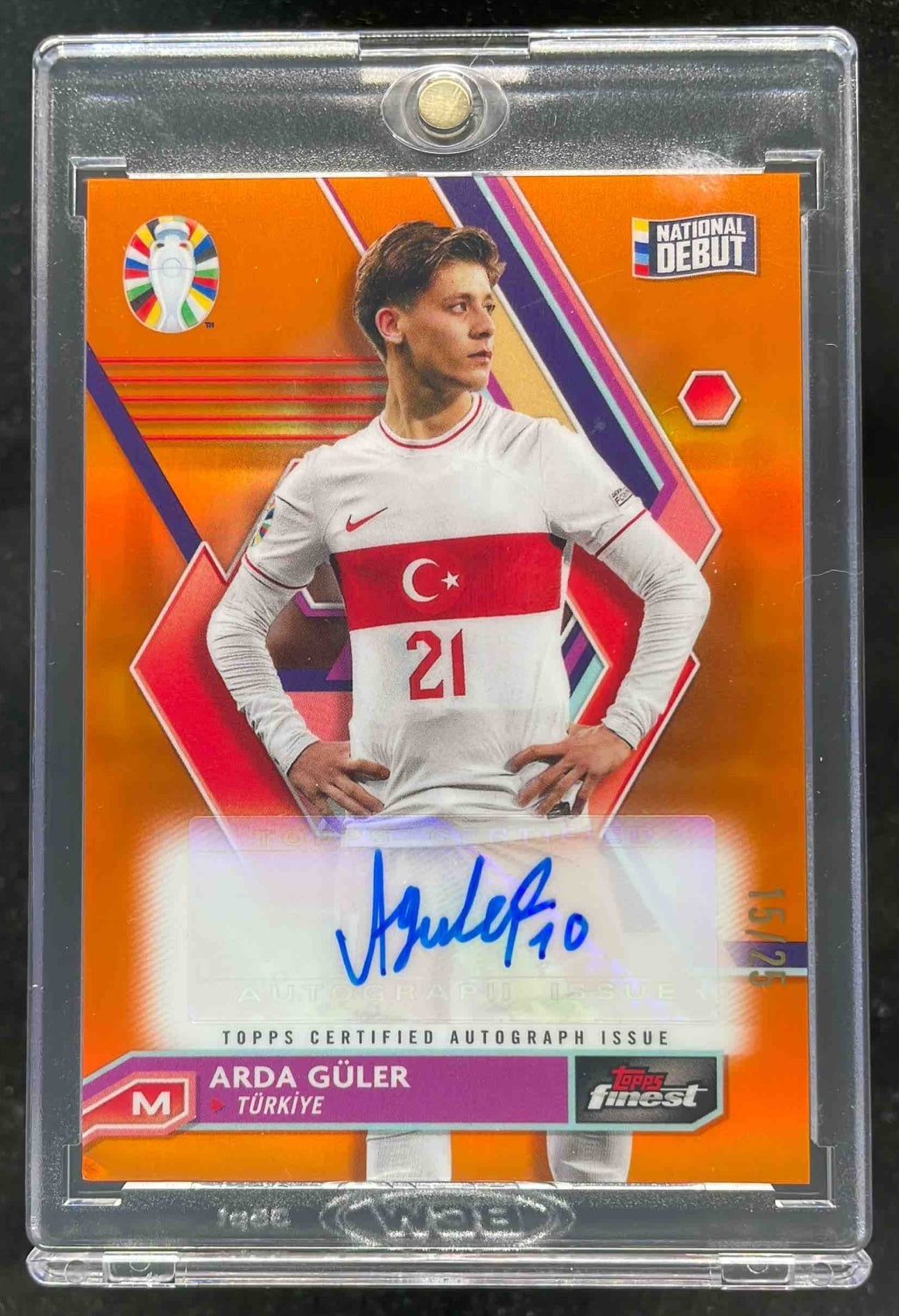 2023-24 Topps Finest Road to UEFA EURO 2024 Card Orange Arda Guler Auto /25