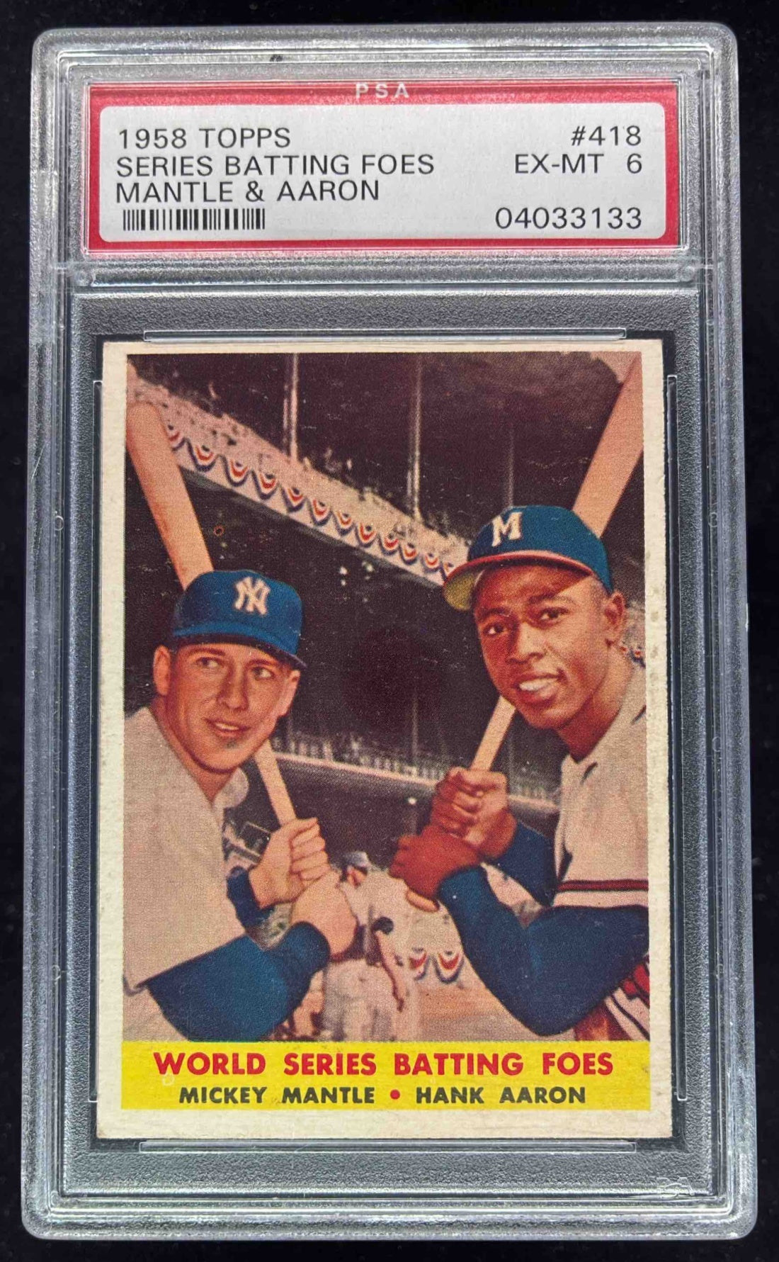 1958 Topps #418 World Series Batting Foes Mickey Mantle Hank Aaron PSA 6