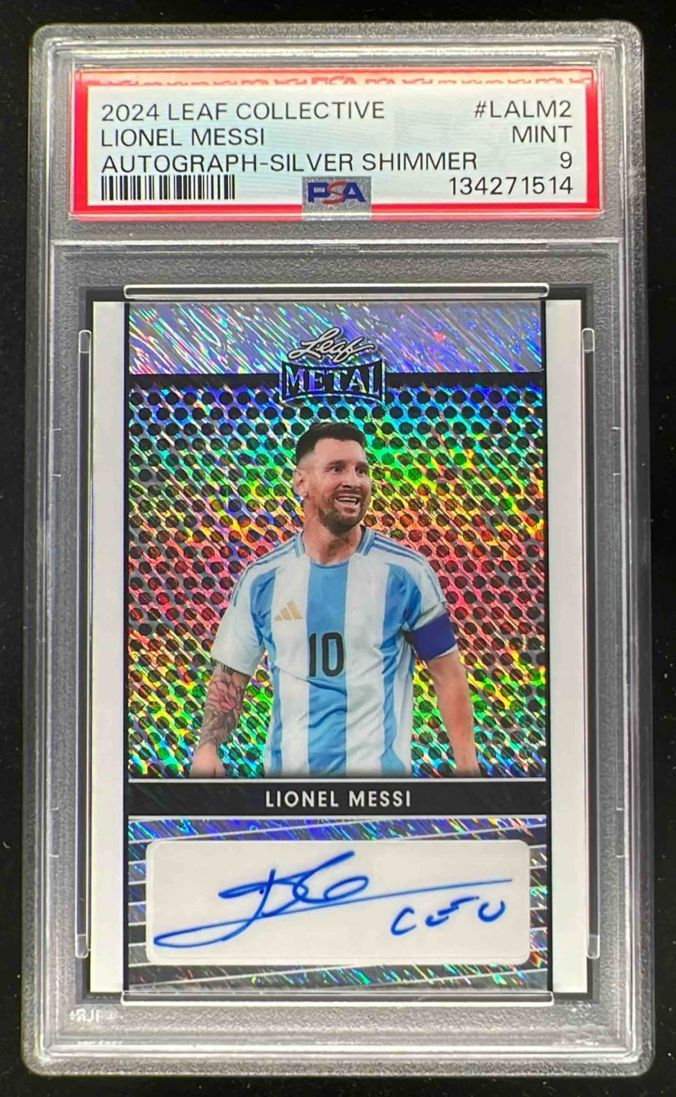2024 Leaf Metal Autograph Silver Shimmer #LALM2 Lionel Messi Auto /3 PSA 9