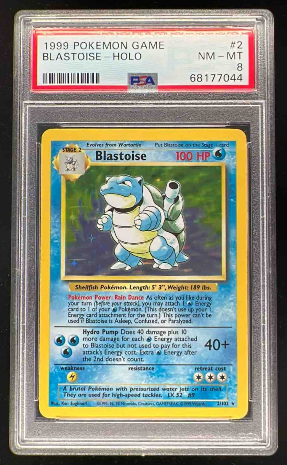 1999 Pokemon Unlimited #2/102 Blastoise Rare Holo PSA 8