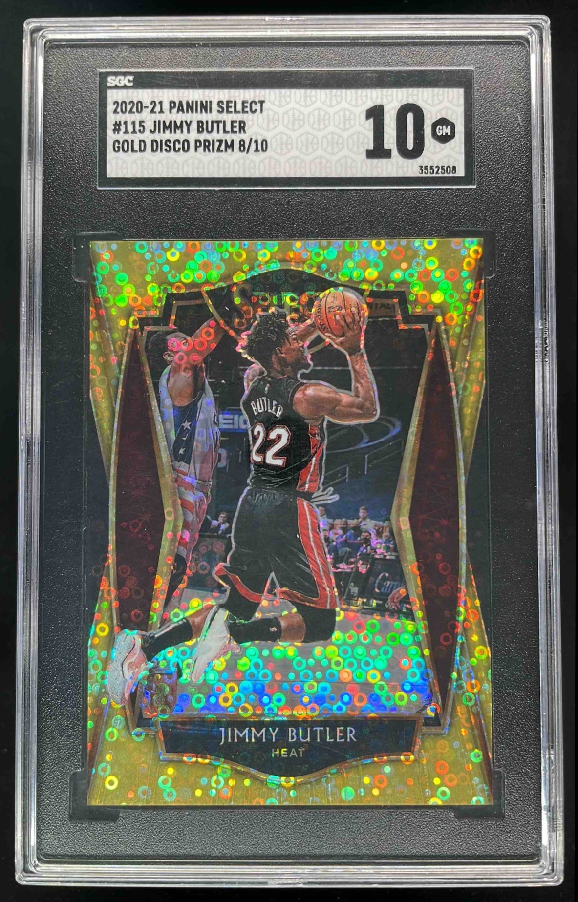 2020 Panini Select Gold Disco Prizms #115 Jimmy Butler Premier Level /10 SGC 10