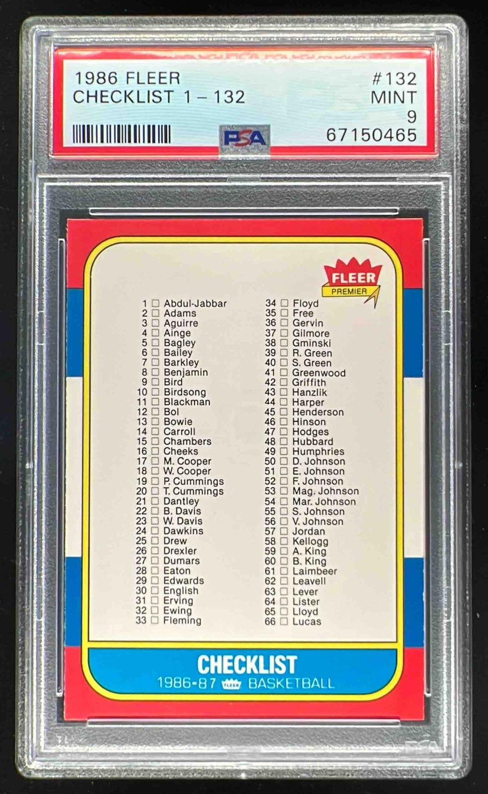 1986-87 Fleer #132 Checklist PSA 9