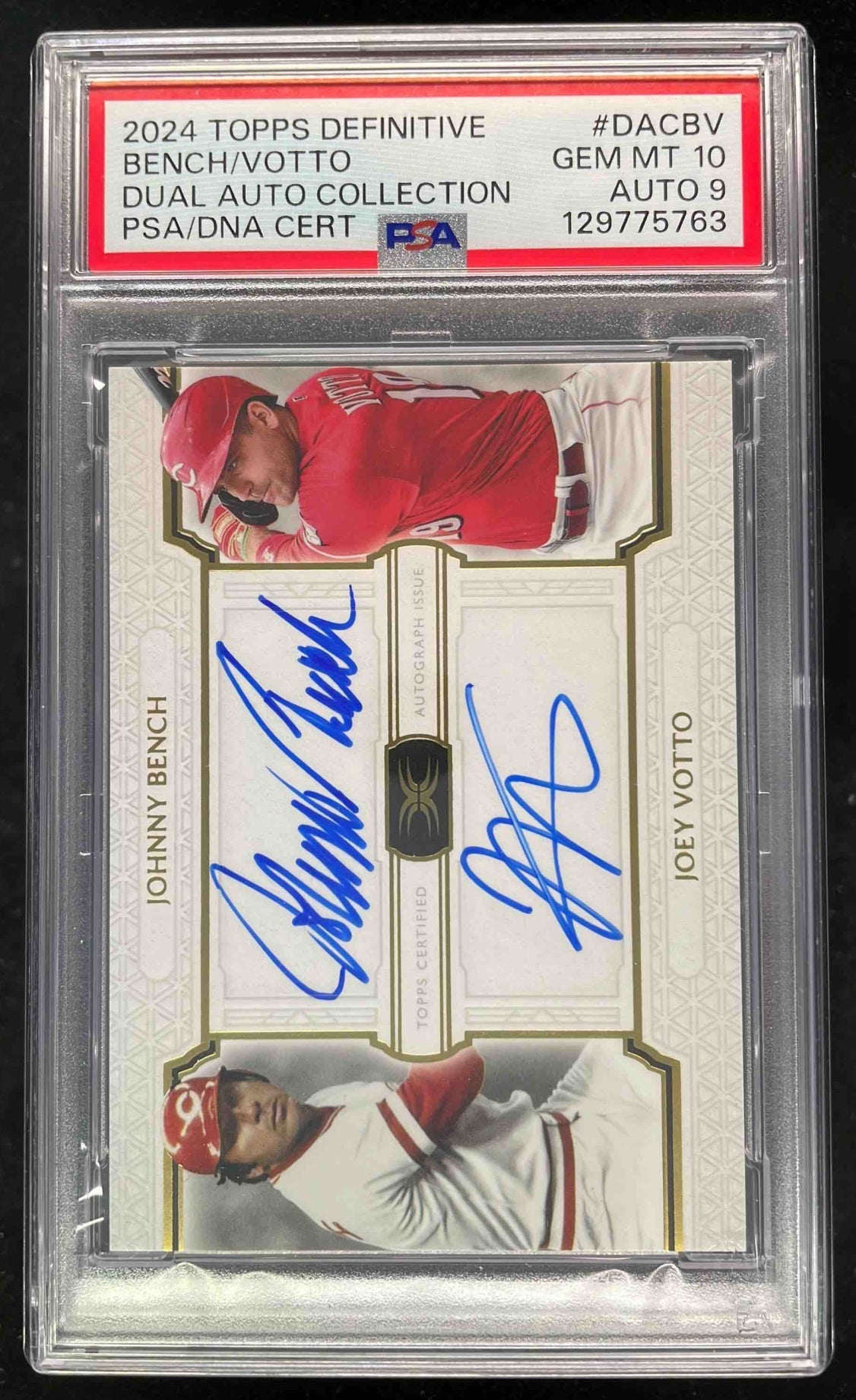 2024 Topps Definitive Collection Dual Auto Joey Votto Johnny Bench /35 PSA 10