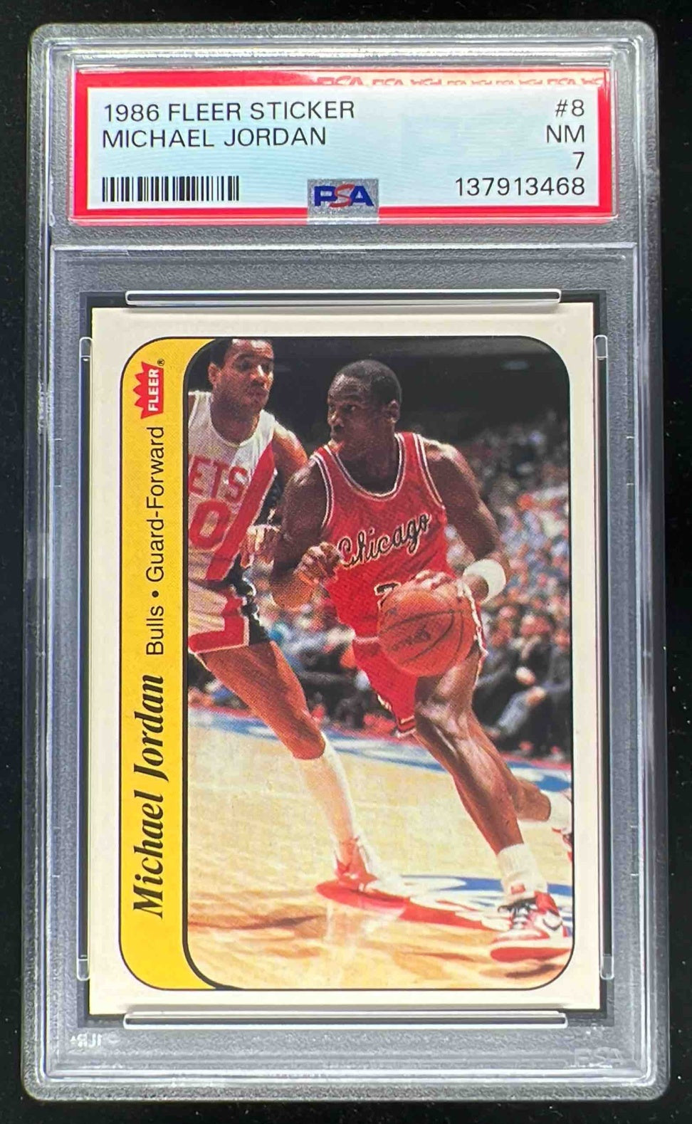 1986-87 Fleer Stickers #8 Michael Jordan RC PSA 7