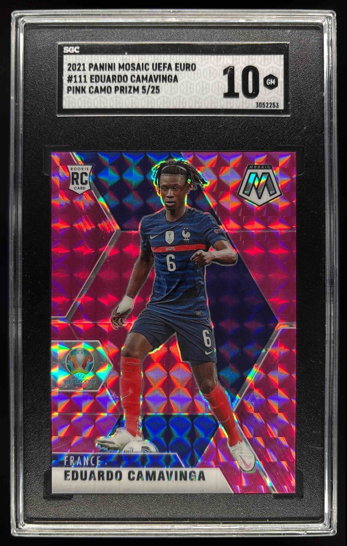 2021 Panini Mosaic UEFA EURO Mosaic Camo Pink #111 Eduardo Camavinga RC SGC 10