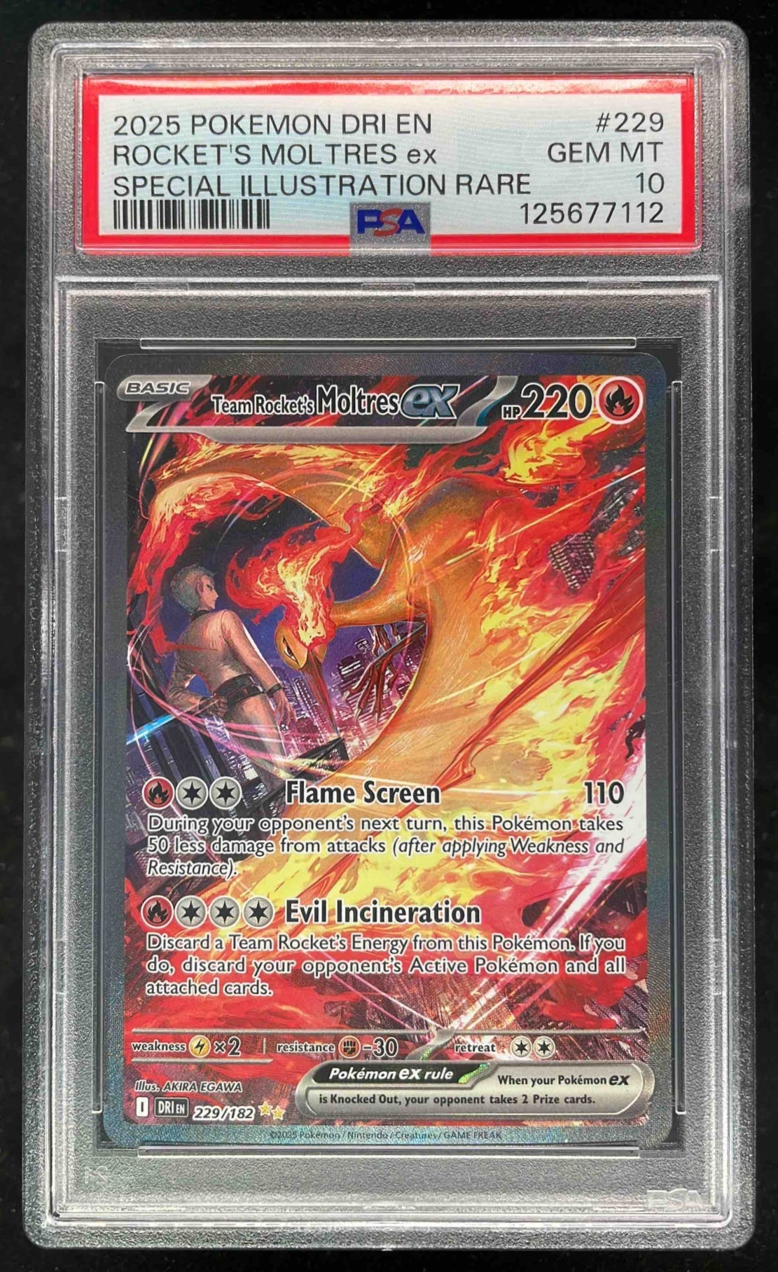 2025 Pokemon Destined Rivals #229/182 Team Rocket's Moltres ex PSA 10