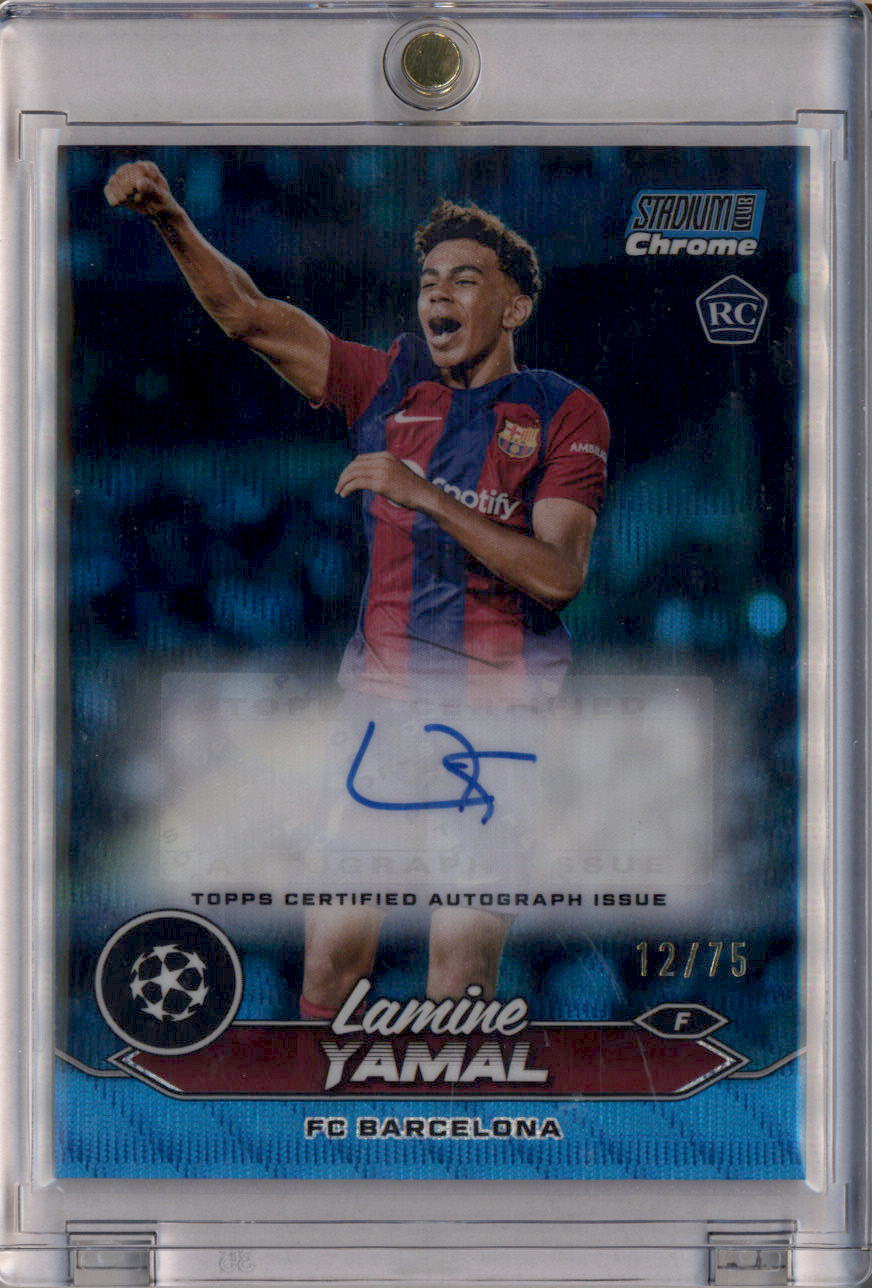 2023-24 Stadium Club Chrome UEFA Blue Wave Lamine Yamal RC Auto /75