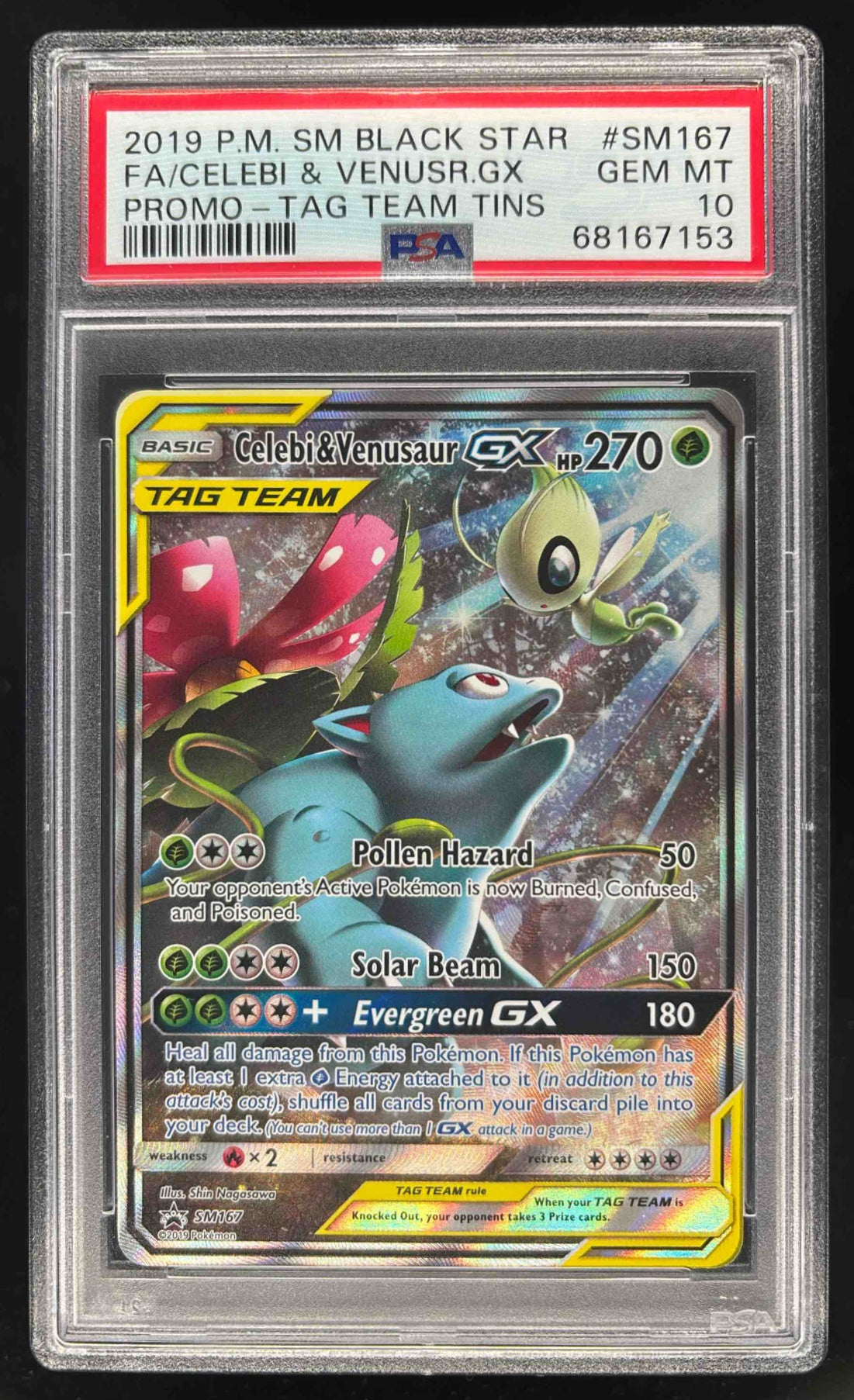 2019 Pokemon SM Black Star Promos #SM167 Celebi & Venusaur Tag Team PSA 10