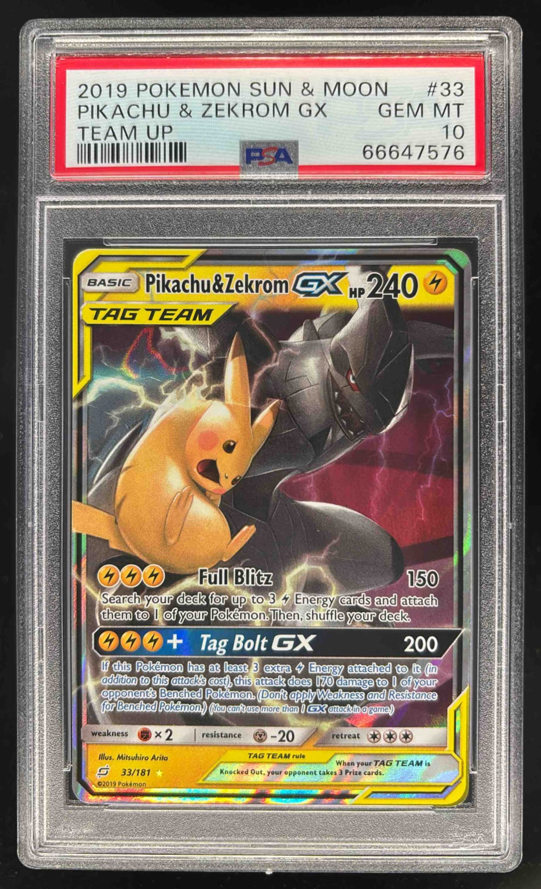 2019 Pokemon Sun & Moon Team Up #33/181 Pikachu & Zekrom Holo PSA 10