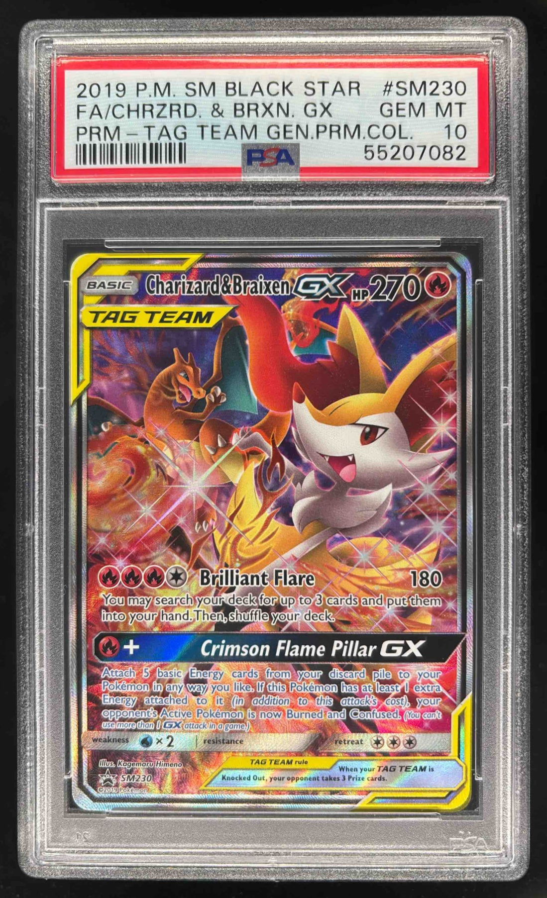 2019 Pokemon SM Black Star Promos #SM230 Charizard & Braixen Tag Team PSA 10
