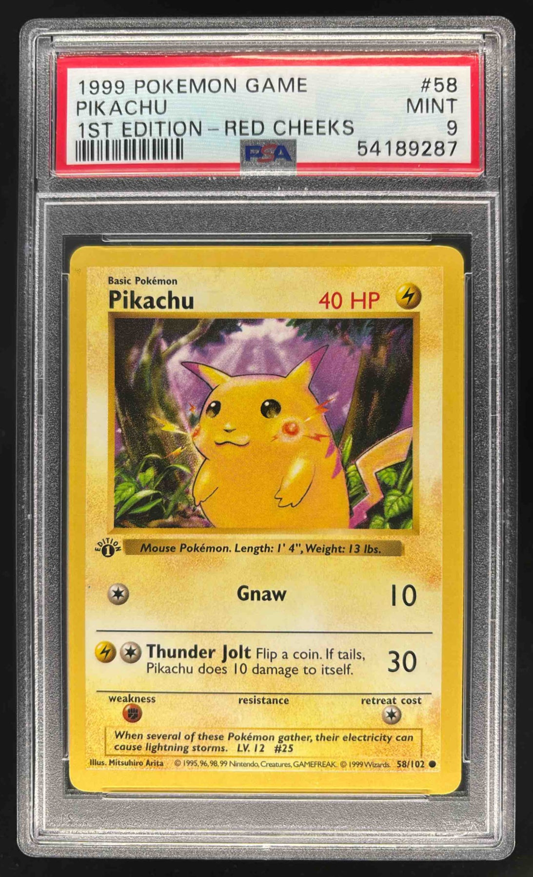 1999 Pokemon Set 1st Edition #58/102 Pikachu Red Cheeks PSA 9
