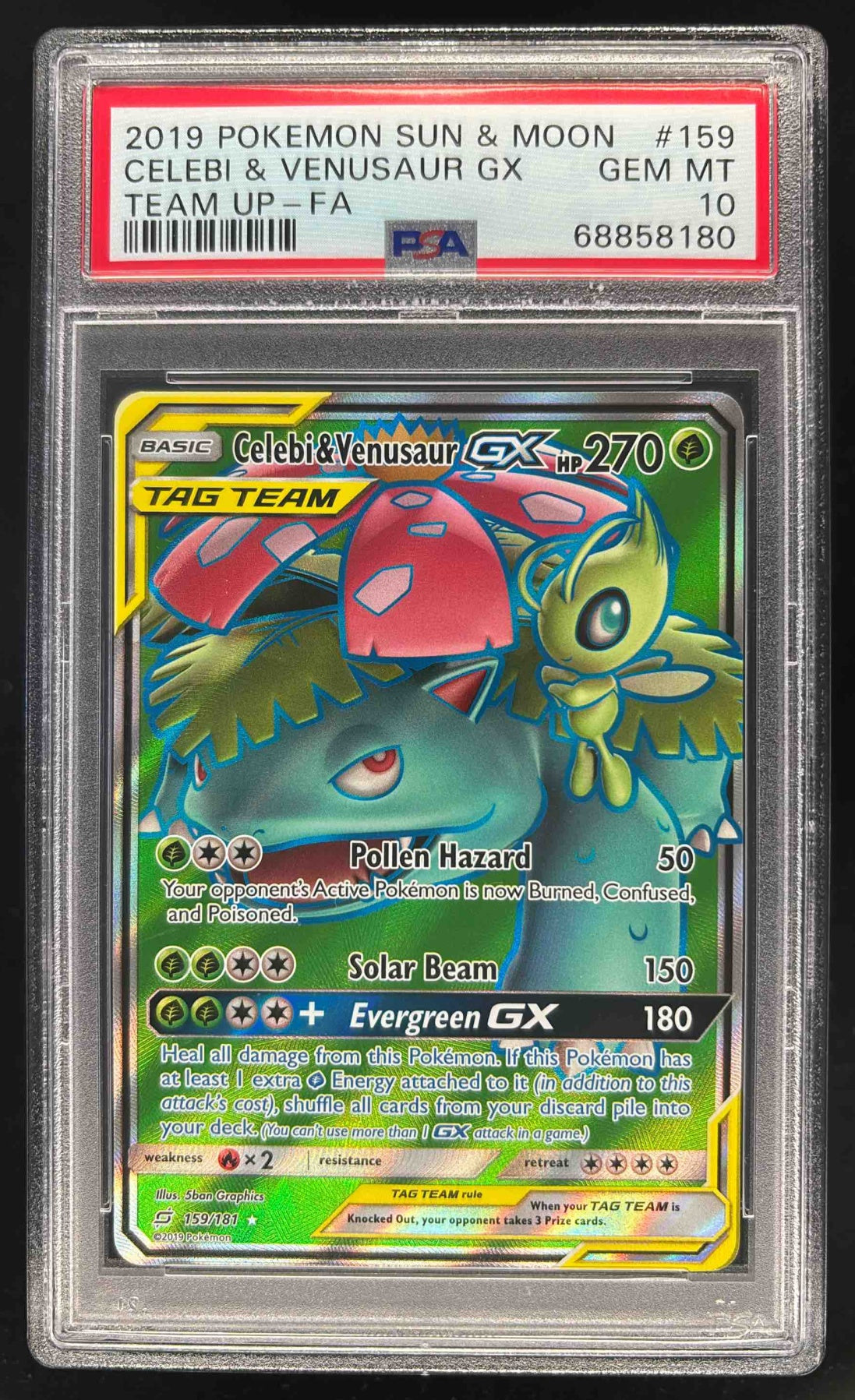 2019 Pokemon Sun & Moon Team Up #159/181 Celebi & Venusaur PSA 10