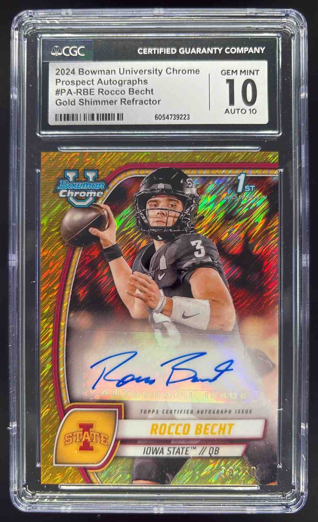 2024 Bowman Chrome University Gold Shimmer #PA-RBE Rocco Becht Auto /50 CGC 10