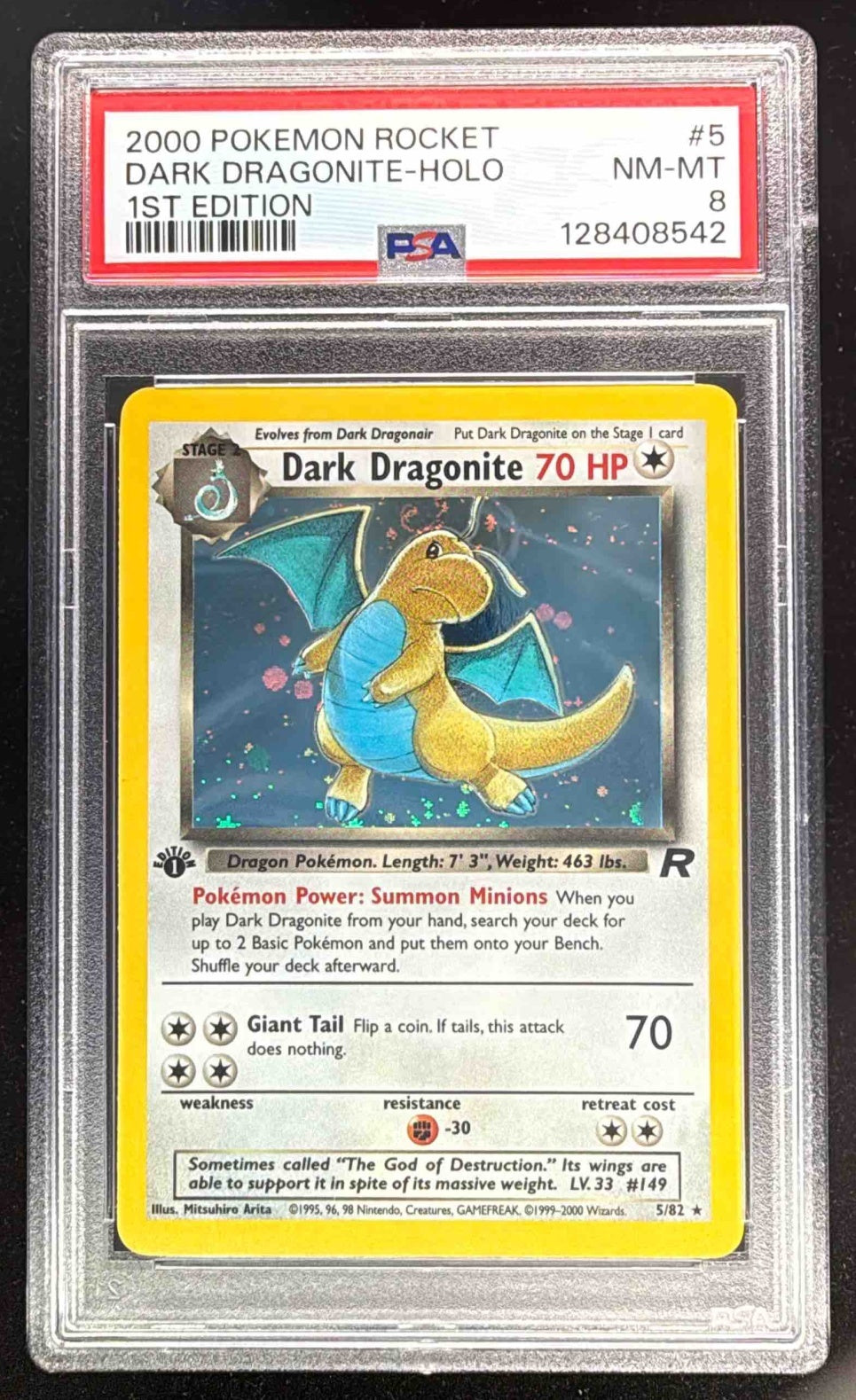 2000 Pokemon Team Rocket First Edition #5/82 Dark Dragonite Holo PSA 8