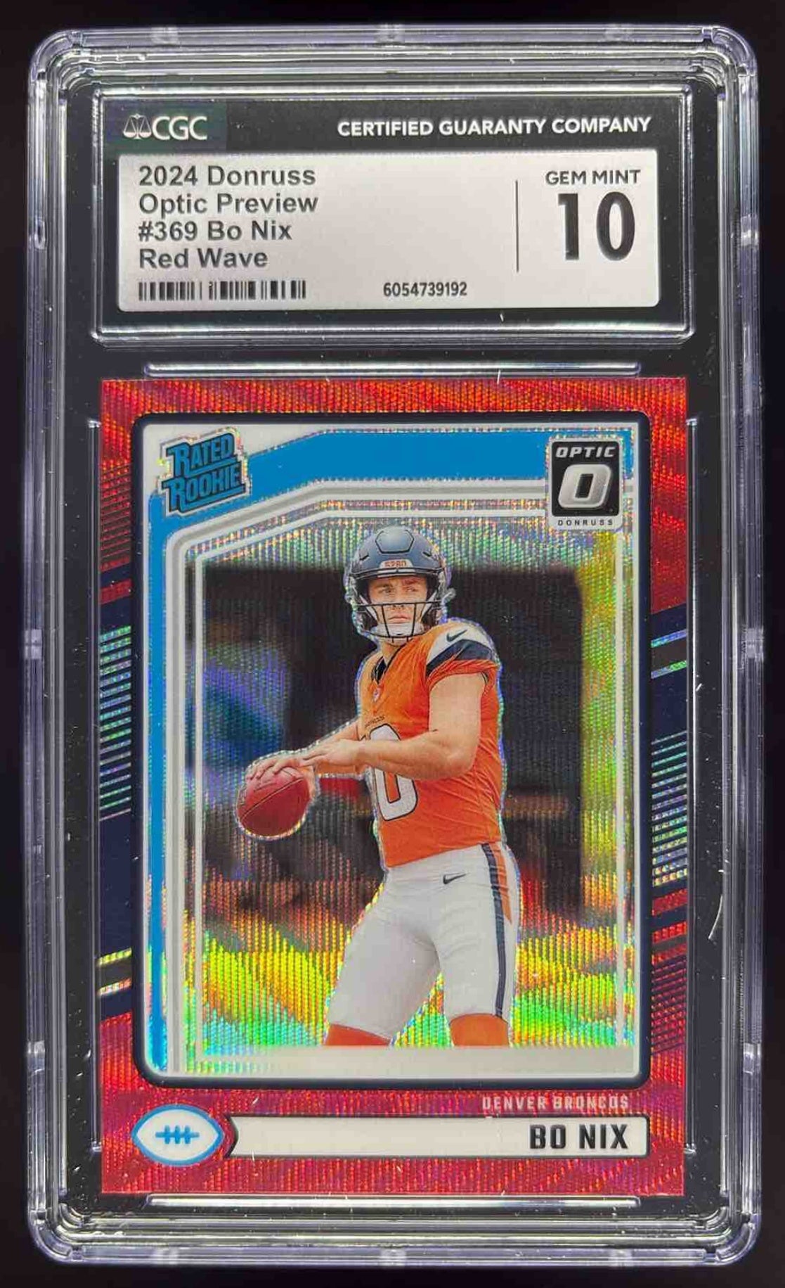 2024 Donruss Optic Rated Rookies Preview Red Wave #369 Bo Nix RC CGC 10