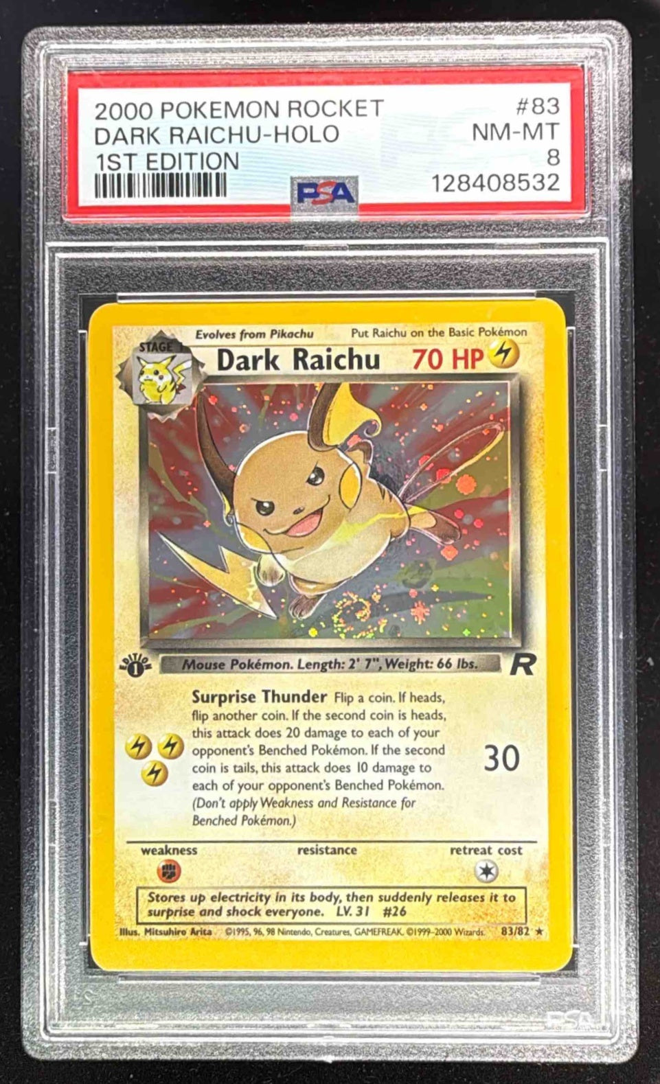 2000 Pokemon Team Rocket First Edition #83/82 Dark Raichu Holo PSA 8