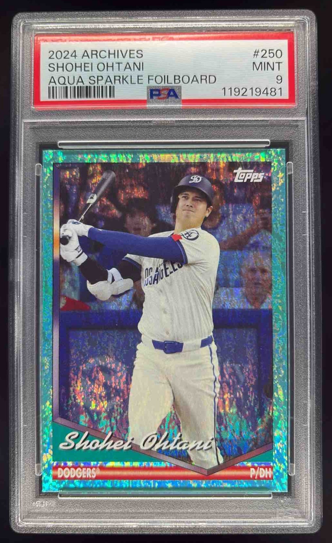 2024 Topps Archives Aqua Sparkle Foilboard #250 Shohei Ohtani /75 PSA 9