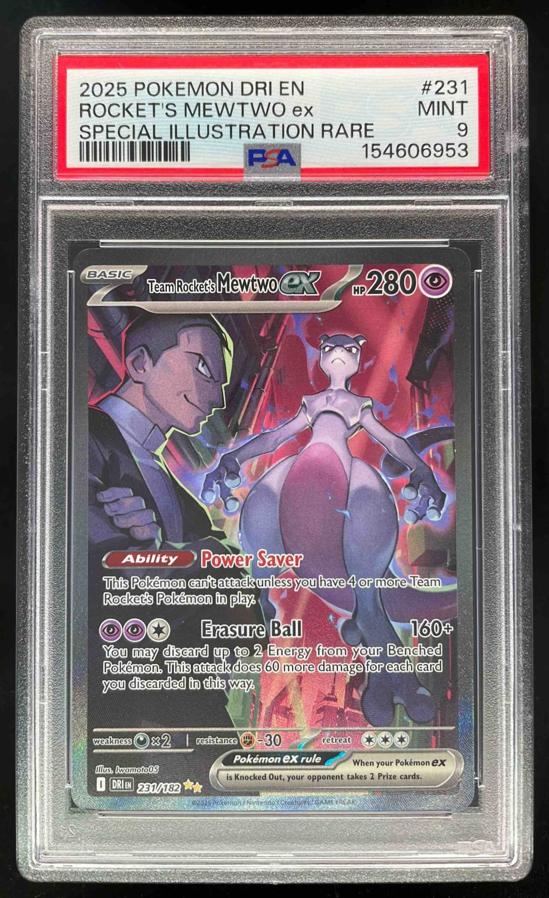 2025 Pokemon Destined Rivals #231/182 Team Rocket's Mewtwo ex PSA 9