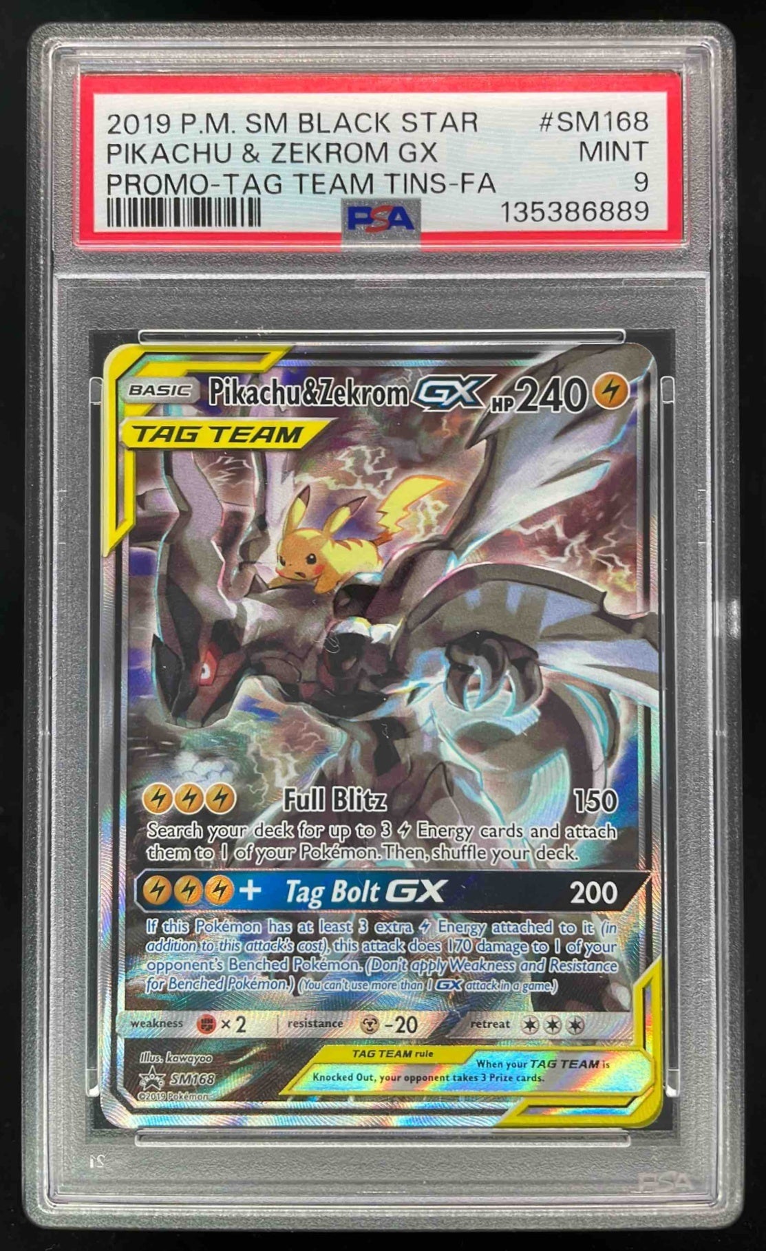 2019 Pokemon SM Black Star Tag Team #SM168 Pikachu Zekrom GX PSA 9
