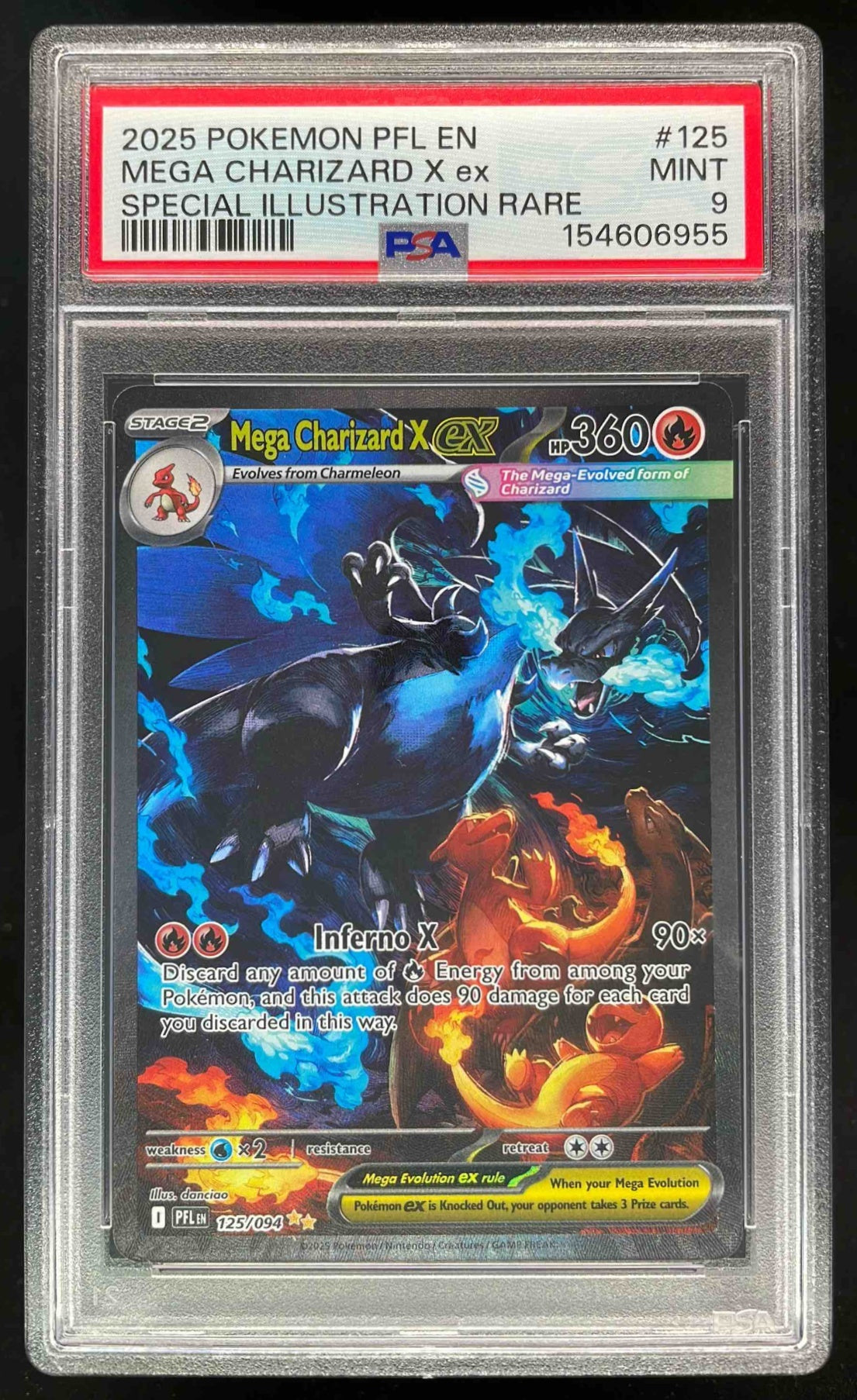 2025 Pokemon Phantasmal Flames #125/094 Mega Charizard X ex Rare PSA 9