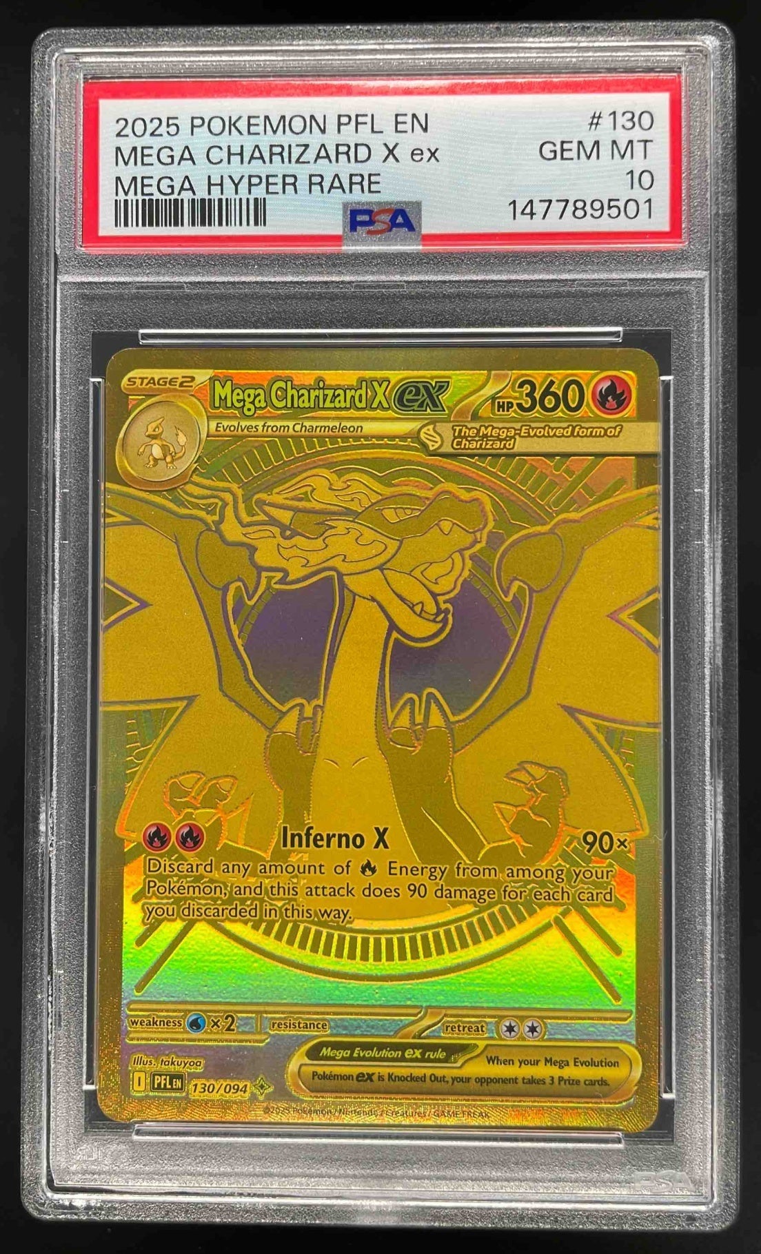 2025 Pokemon Phantasmal Flames #130 Mega Charizard X ex Mega Hyper Rare PSA 10