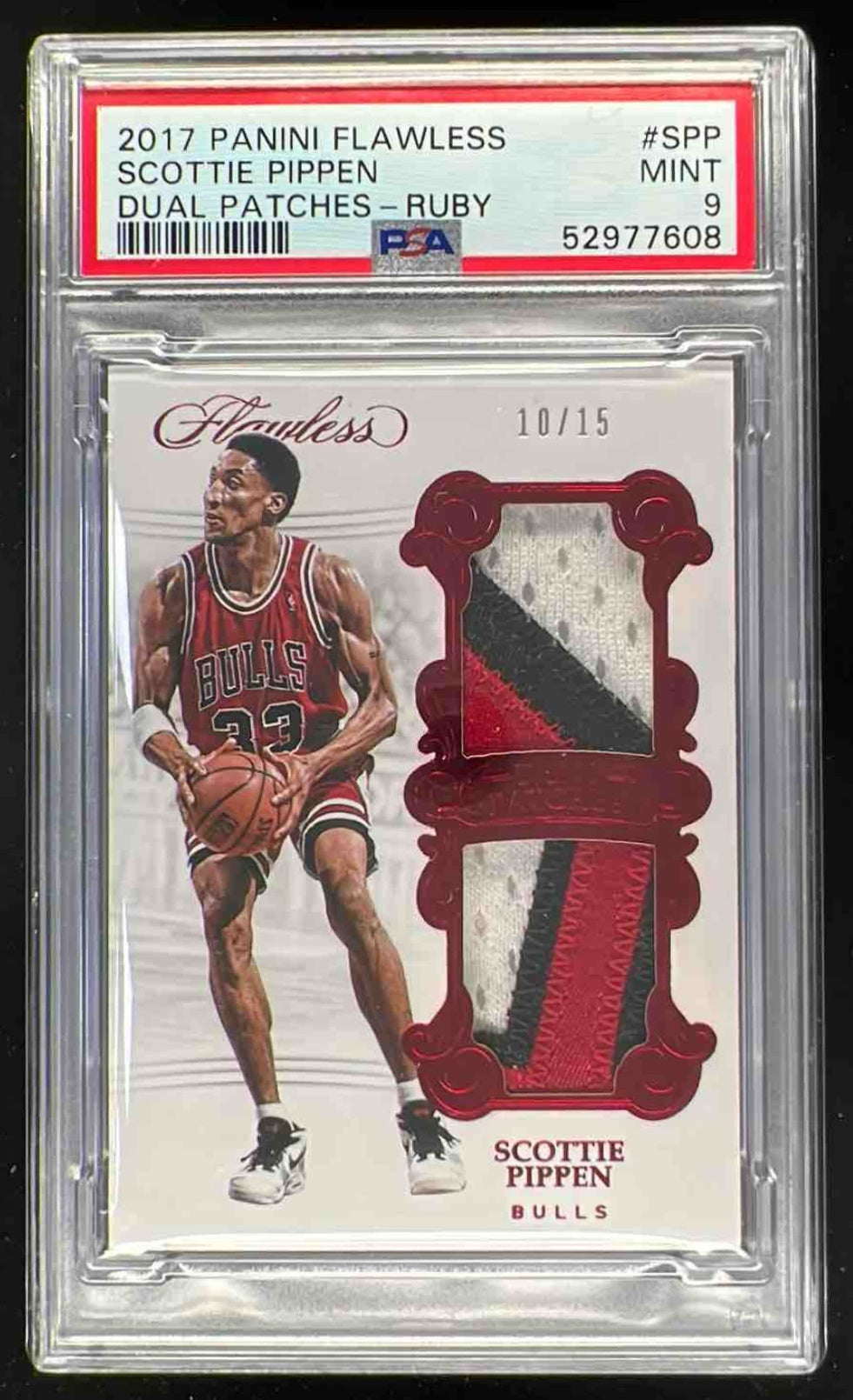 2017-18 Panini Flawless Dual Patches Ruby #DP-SPP Scottie Pippen /15 PSA 9