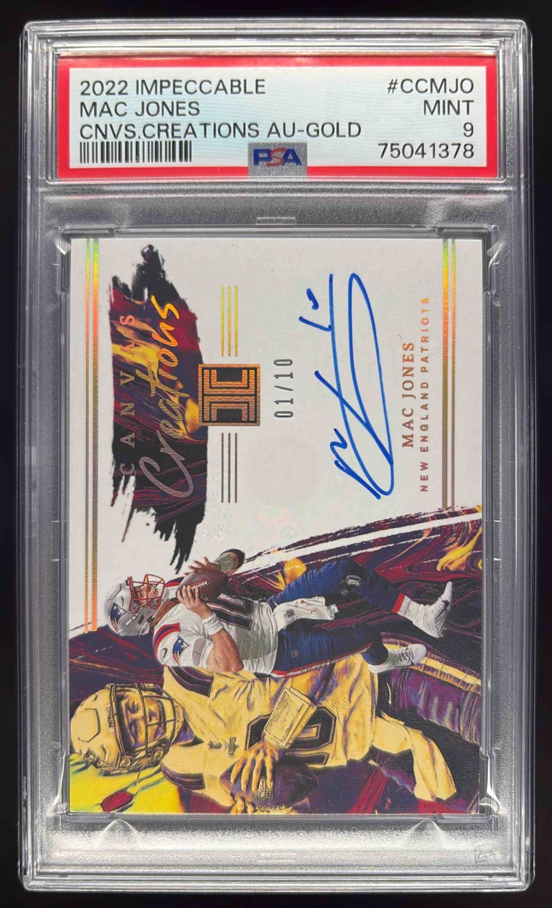 2022 Panini Impeccable Canvas Creations Gold #CC-MJO Mac Jones Auto /10 PSA 9