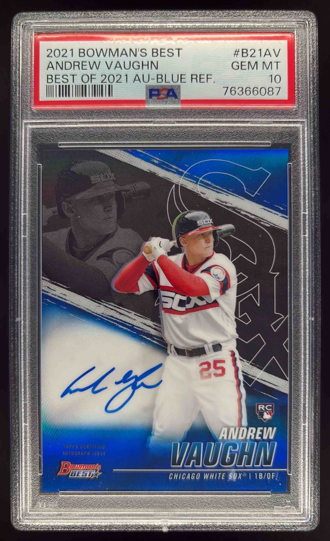 2021 Bowman's Best of 2021 Blue Refractor #AV Andrew Vaughn RC Auto /150 PSA 10