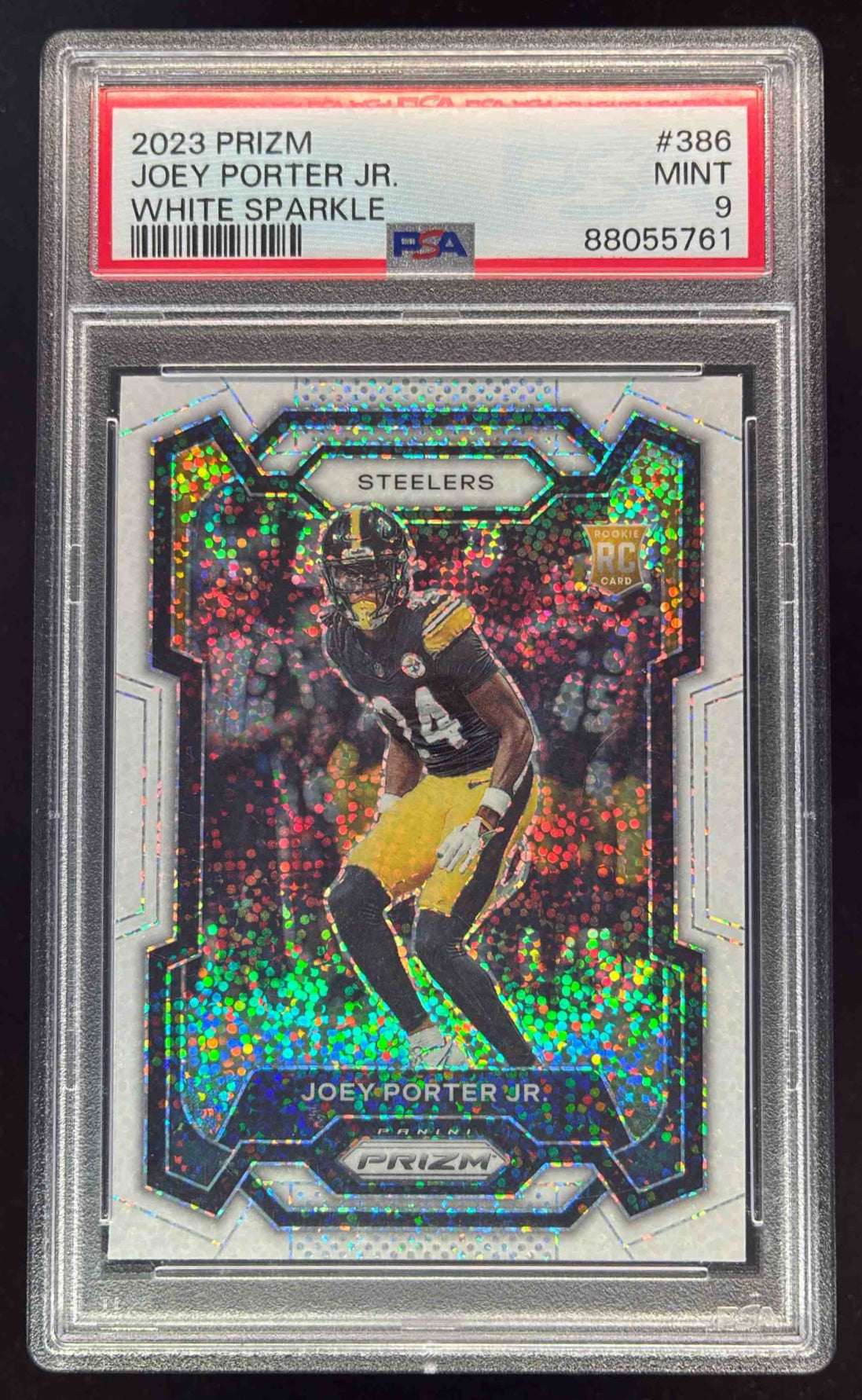 2023 Panini Prizm White Sparkle Prizm SSP #386 Joey Porter Jr. RC PSA 9