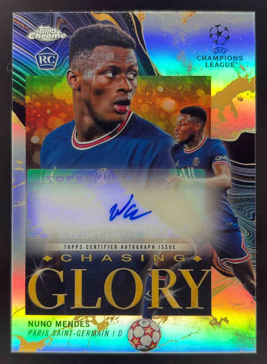 2021 Topps Chrome UEFA League Chasing Glory #CG-18 Nuno Mendes Auto /100