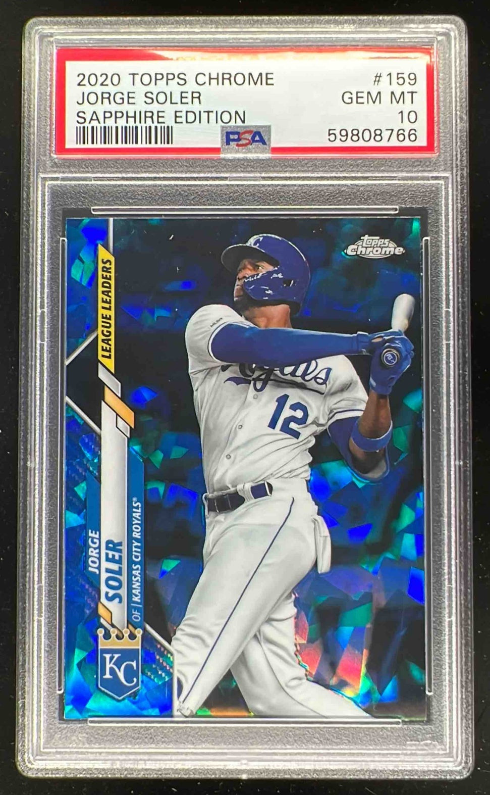 2020 Topps Chrome Sapphire Chrome #159 Jorge Soler League Leaders PSA 10