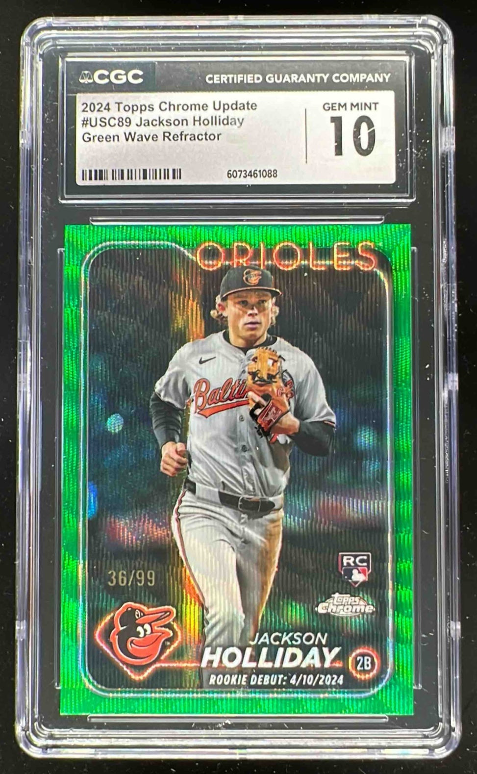2024 Topps Chrome Update Wave Green Refractor Jackson Holliday RC /99 CGC 10