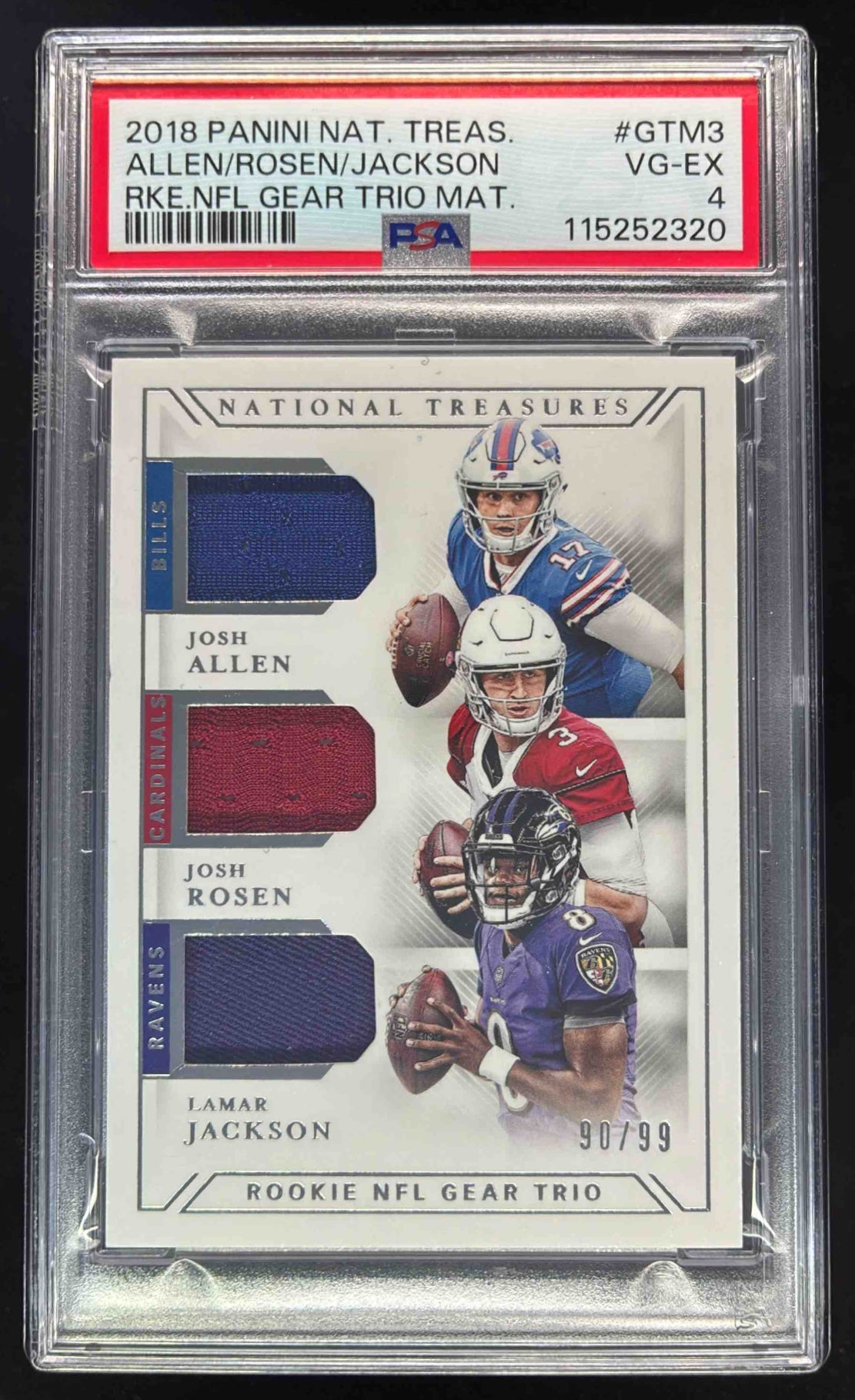 2018 National Treasures Materials Josh Rosen Allen Lamar Jackson RC /99 PSA 4