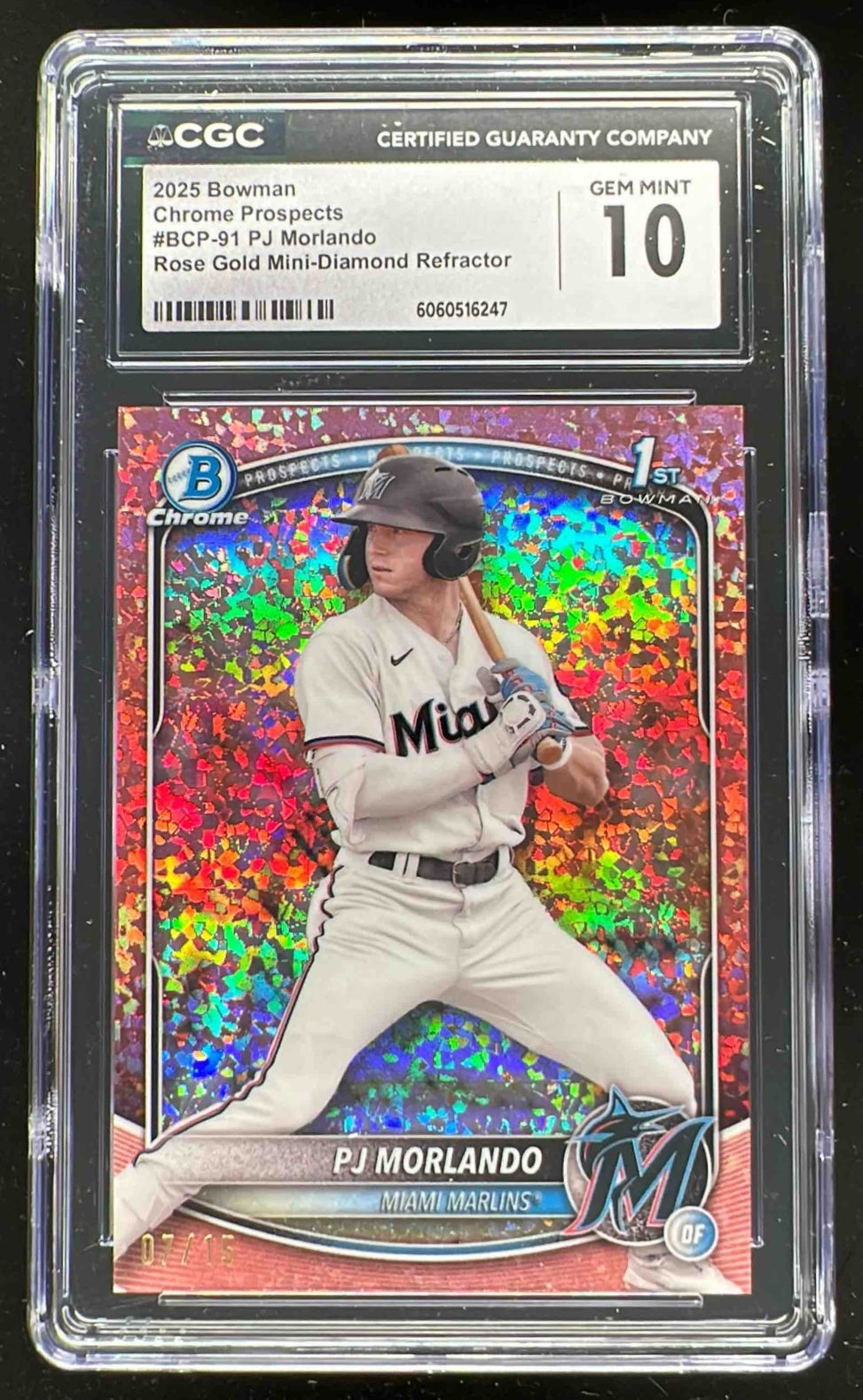 2025 Bowman Chrome Rose Gold Mini Diamond #BCP-91 PJ Morlando RC /15 CGC 10