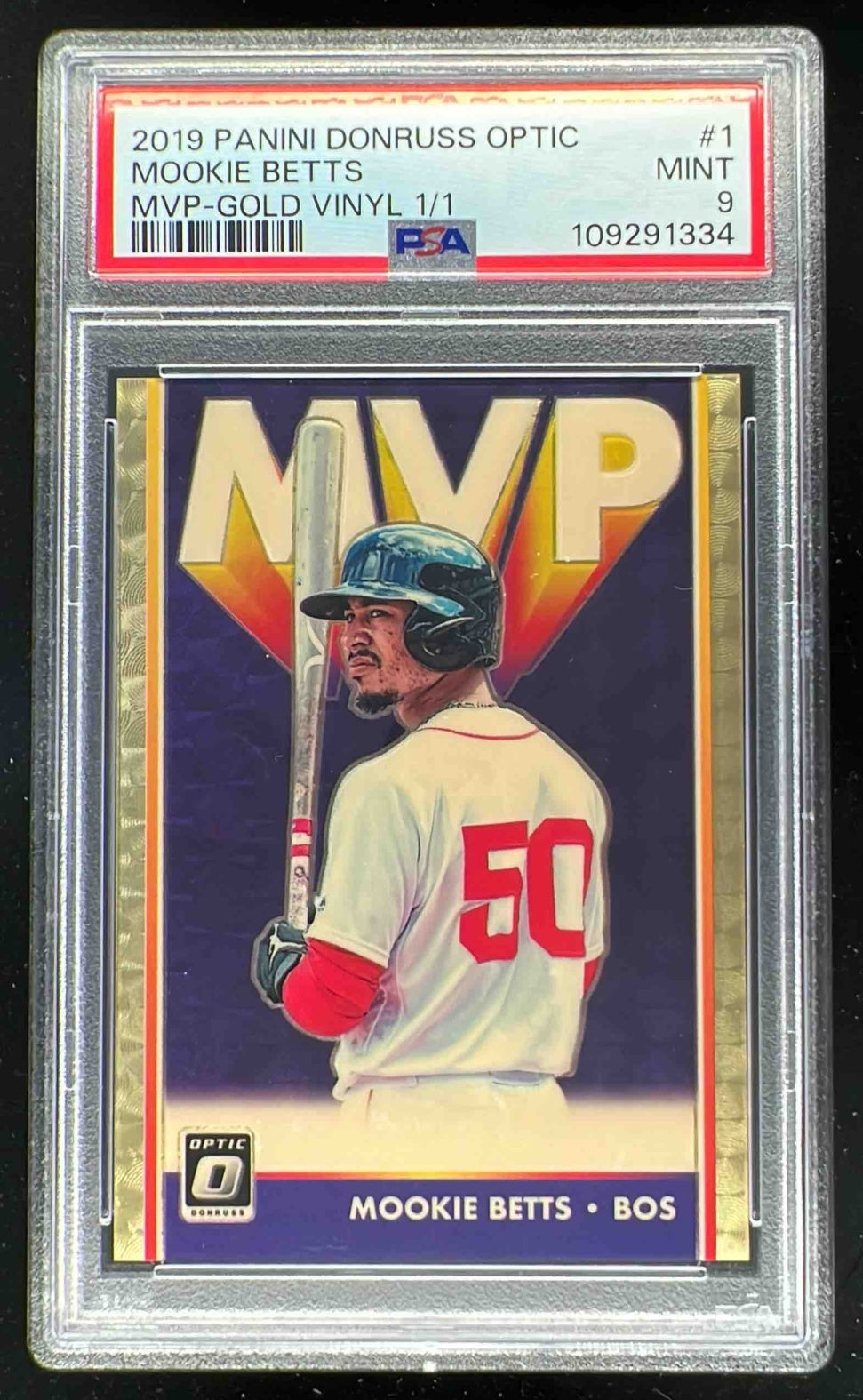 2019 Panini Donruss Optic MVP Gold Vinyl Prizm #MVP-1 Mookie Betts 1/1 PSA 9