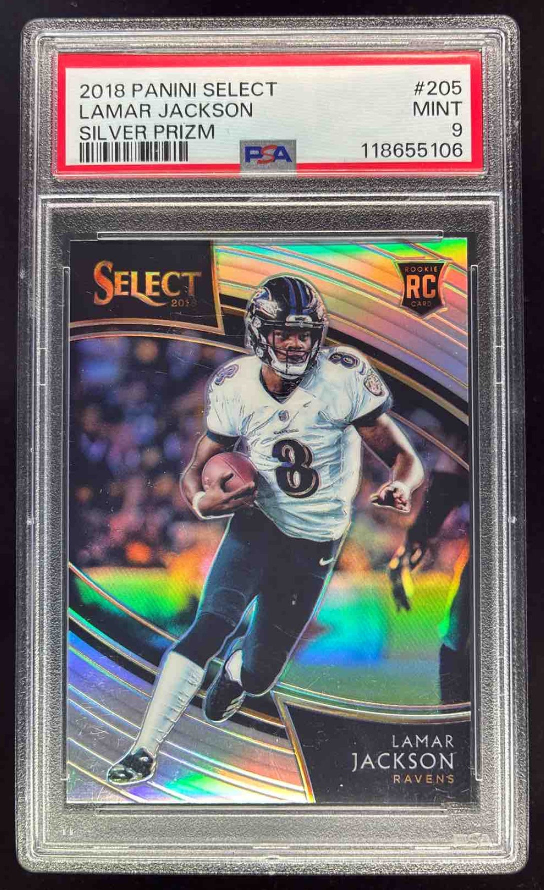 2018 Panini Select Silver Prizm #205 Lamar Jackson RC Field Level PSA 9