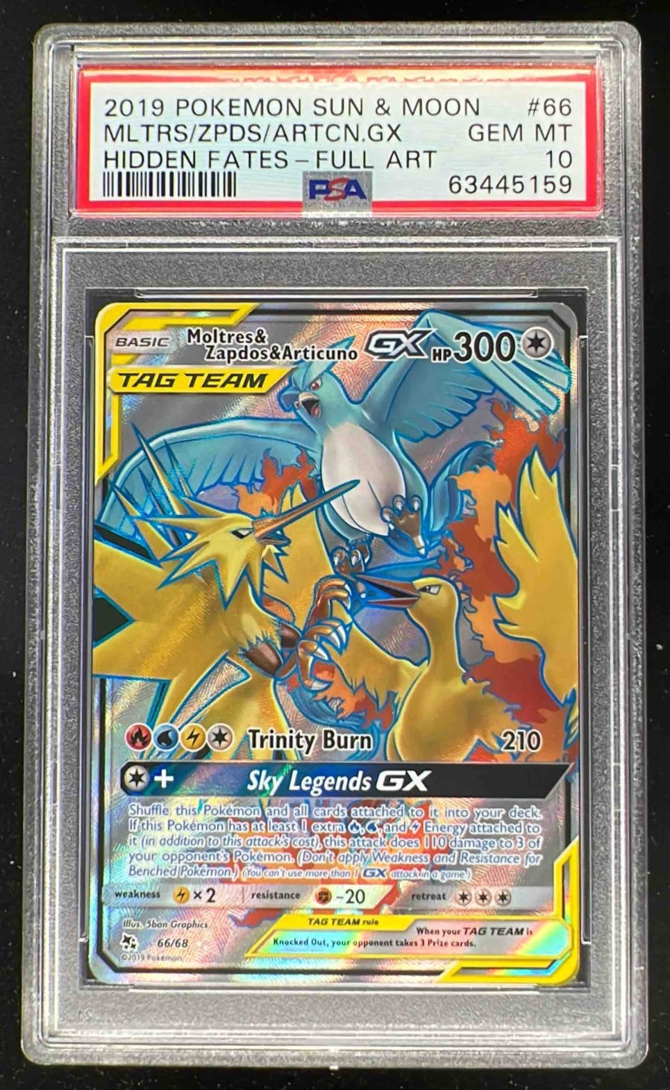 2019 Pokemon SM Hidden Fates #66/68 Moltres & Zapdos & ArticunoTag Team PSA 10
